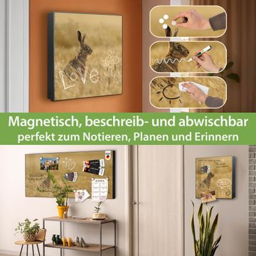 Bringe Ordnung und Eleganz in deinen Eingangsbereich mit dem banjado Schlüsselkasten Motiv Motiv Hase. Die moderne Schlüsselbox kombiniert funktionales Design mit hochwertiger Verarbeitung und wird so zu einem echten Hingucker in Flur, Büro oder Ferienwohnung. ✅ Stilvolle Schlüsselaufbewahrung mit Motiv Motiv Hase Der Design-Schlüsselkasten Motiv Motiv Hase bietet Platz für bis zu 32 Schlüssel, die auf 4 stabilen Reihen mit je 8 Haken übersichtlich verstaut werden. Mit seinen kompakten Maßen von 30 x 30 x 5 cm passt die Schlüsselbox perfekt auch in kleinere Räume. Der schwarz lackierte Stahlkorpus mit rechts angeschlagenem Türscharnier harmoniert mit gedruckten Folie auf der Front und fügt sich nahtlos in jedes Wohnambiente ein. Ob als Schlüsselorganizer für Zuhause oder als praktische Lösung für Büros, Praxen und Gewerbe, der banjado Schlüsselkasten sorgt für Ordnung und Übersicht. Dank der magnetischen, mit Kreidestiften beschreibbaren Folie auf der Front kannst du Notizen anheften oder Termine direkt auf der Oberfläche festhalten. Die Schlüsselbox Motiv Motiv Hase zur Wandmontage wird inklusive Befestigungsmaterial geliefert und ist schnell angebracht. So hast du deine Schlüssel jederzeit griffbereit und zugleich stilvoll verstaut. Mit diesem banjado Schlüsselkasten Motiv Motiv Hase kombinierst du praktische Aufbewahrung mit stilvollem Wohndesign. Ob privat oder geschäftlich, die Schlüsselbox sorgt für mehr Ordnung, Übersicht und ein wohnliches Ambiente.Vorteile im Überblick
