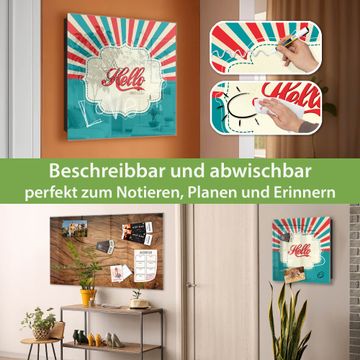 Bringe Ordnung und Eleganz in deinen Eingangsbereich mit dem banjado Schlüsselkasten Motiv Motiv Hello. Die moderne Schlüsselbox kombiniert funktionales Design mit hochwertiger Verarbeitung und wird so zu einem echten Hingucker in Flur, Büro oder Ferienwohnung. ✅ Stilvolle Schlüsselaufbewahrung mit Glasfront im Motiv Motiv Hello Der Design-Schlüsselkasten Motiv Motiv Hello bietet Platz für bis zu 50 Schlüssel, die auf 5 stabilen Reihen mit je 10 Haken übersichtlich verstaut werden. Mit seinen kompakten Maßen von 30 x 30 x 5 cm passt die Schlüsselbox perfekt auch in kleinere Räume. Der schwarz lackierte Stahlkorpus mit rechts angeschlagenem Türscharnier harmoniert mit der Glasfront und fügt sich nahtlos in jedes Wohnambiente ein. Ob als Schlüsselorganizer für Zuhause oder als praktische Lösung für Büros, Praxen und Gewerbe, der banjado Schlüsselkasten sorgt für Ordnung und Übersicht. Dank der magnetischen, mit Kreidestiften beschreibbaren Glasfront kannst du Notizen anheften oder Termine direkt auf der Oberfläche festhalten. Die Schlüsselbox Motiv Motiv Hello zur Wandmontage wird inklusive Befestigungsmaterial geliefert und ist schnell angebracht. So hast du deine Schlüssel jederzeit griffbereit und zugleich stilvoll verstaut. Mit diesem banjado Schlüsselkasten Motiv Motiv Hello kombinierst du praktische Aufbewahrung mit stilvollem Wohndesign. Ob privat oder geschäftlich, die Schlüsselbox sorgt für mehr Ordnung, Übersicht und ein wohnliches Ambiente.Vorteile im Überblick
