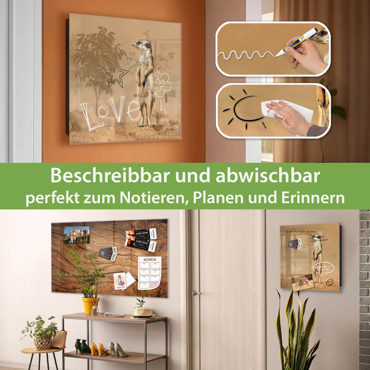 ✅ Magnetisch und mit Kreidestift beschreibbar, gehärtetes Glas, rechts angeschlagene TürOrdnung und Design in einem