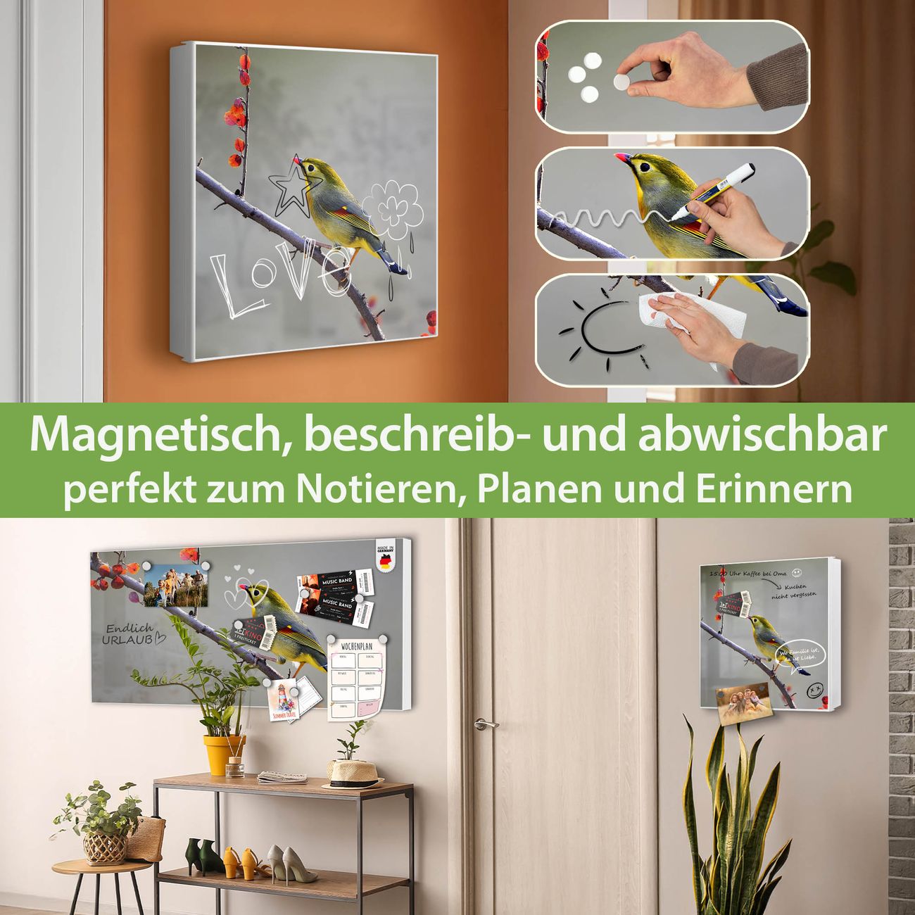 ✅ Magnetisch und mit Kreidestift beschreibbar, links angeschlagene TürOrdnung und Design in einem