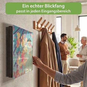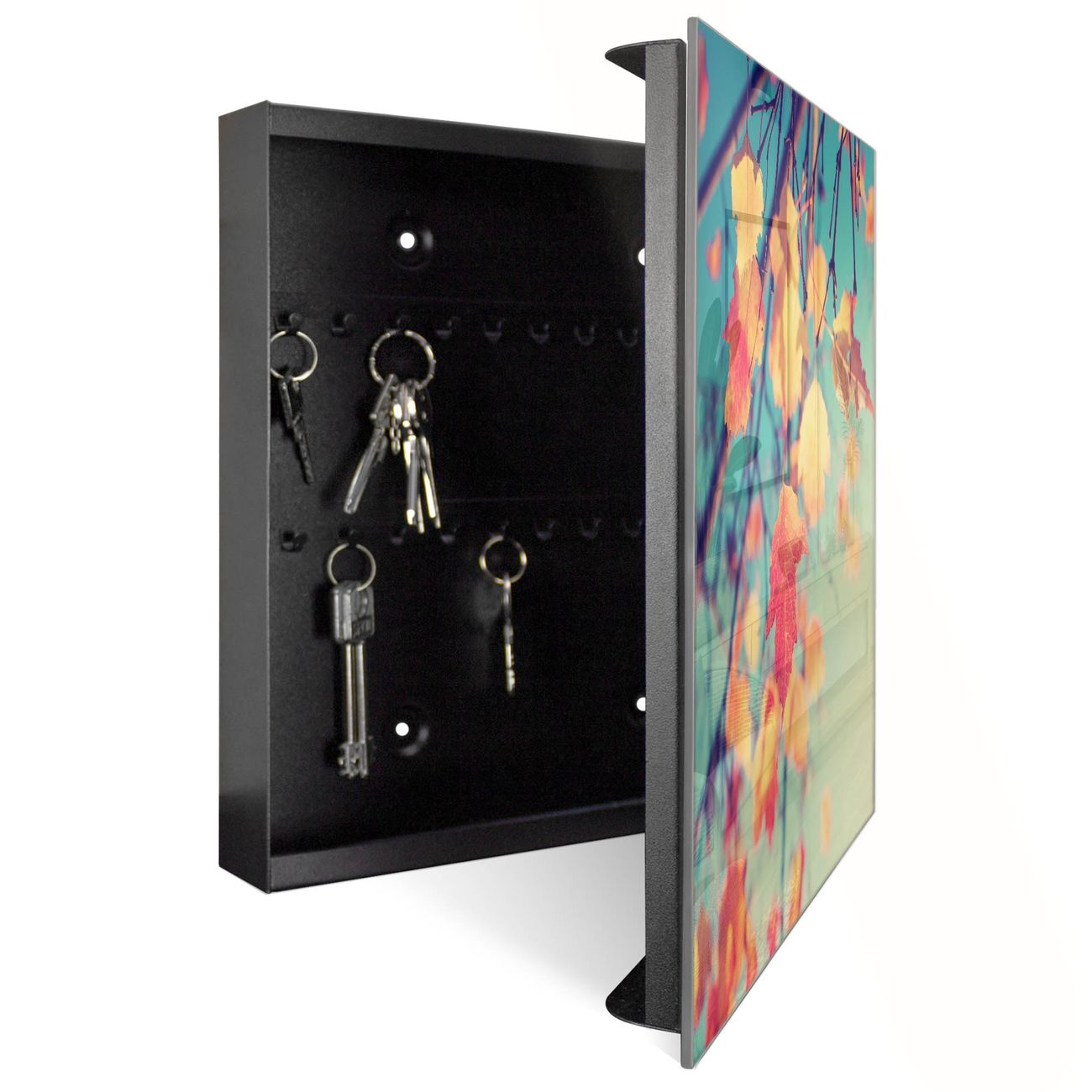 Bringe Ordnung und Eleganz in deinen Eingangsbereich mit dem banjado Schlüsselkasten Motiv Motiv Herbst. Die moderne Schlüsselbox kombiniert funktionales Design mit hochwertiger Verarbeitung und wird so zu einem echten Hingucker in Flur, Büro oder Ferienwohnung. ✅ Stilvolle Schlüsselaufbewahrung mit Glasfront im Motiv Motiv Herbst Der Design-Schlüsselkasten Motiv Motiv Herbst bietet Platz für bis zu 50 Schlüssel, die auf 5 stabilen Reihen mit je 10 Haken übersichtlich verstaut werden. Mit seinen kompakten Maßen von 30 x 30 x 5 cm passt die Schlüsselbox perfekt auch in kleinere Räume. Der schwarz lackierte Stahlkorpus mit rechts angeschlagenem Türscharnier harmoniert mit der Glasfront und fügt sich nahtlos in jedes Wohnambiente ein. Ob als Schlüsselorganizer für Zuhause oder als praktische Lösung für Büros, Praxen und Gewerbe, der banjado Schlüsselkasten sorgt für Ordnung und Übersicht. Dank der magnetischen, mit Kreidestiften beschreibbaren Glasfront kannst du Notizen anheften oder Termine direkt auf der Oberfläche festhalten. Die Schlüsselbox Motiv Motiv Herbst zur Wandmontage wird inklusive Befestigungsmaterial geliefert und ist schnell angebracht. So hast du deine Schlüssel jederzeit griffbereit und zugleich stilvoll verstaut. Mit diesem banjado Schlüsselkasten Motiv Motiv Herbst kombinierst du praktische Aufbewahrung mit stilvollem Wohndesign. Ob privat oder geschäftlich, die Schlüsselbox sorgt für mehr Ordnung, Übersicht und ein wohnliches Ambiente.Vorteile im Überblick