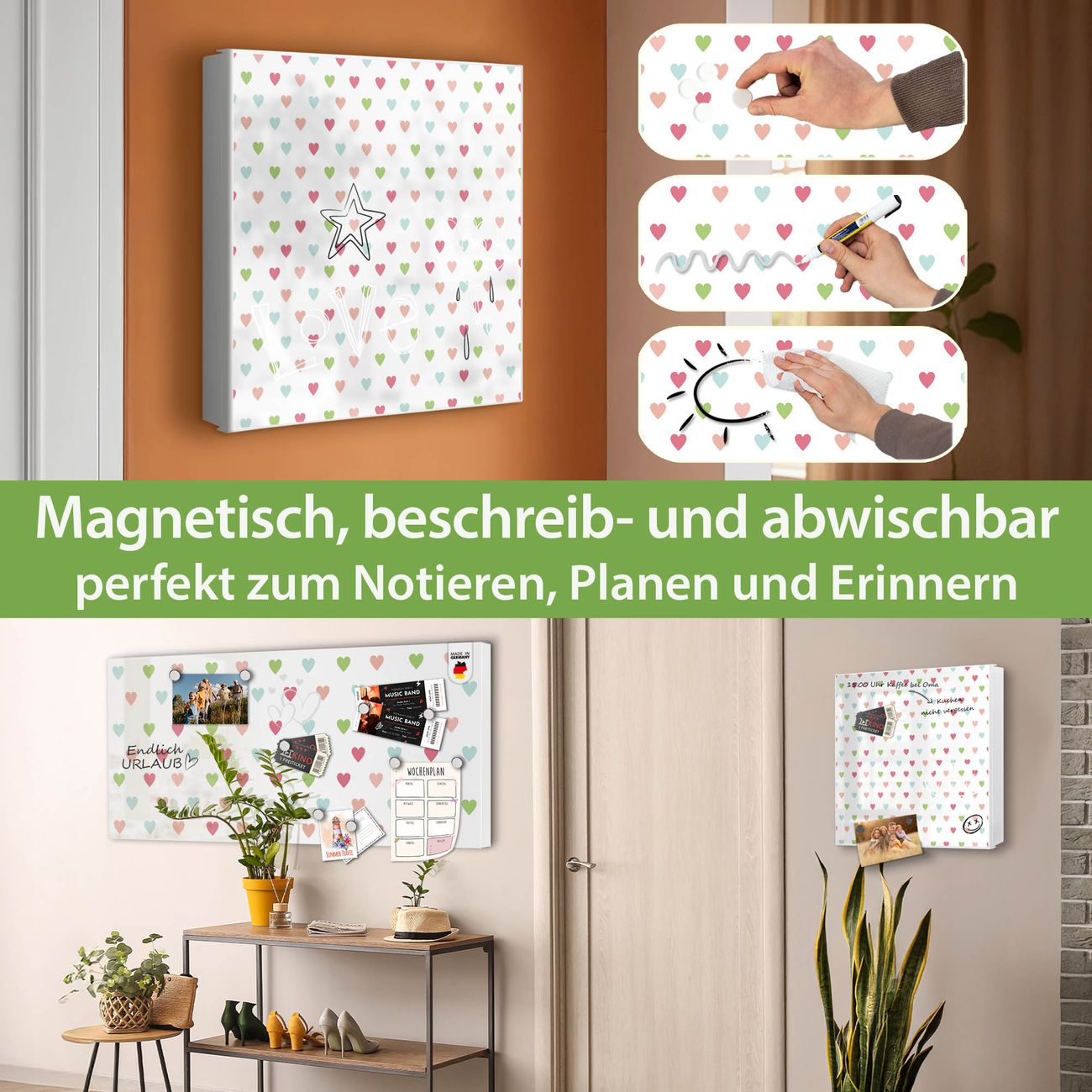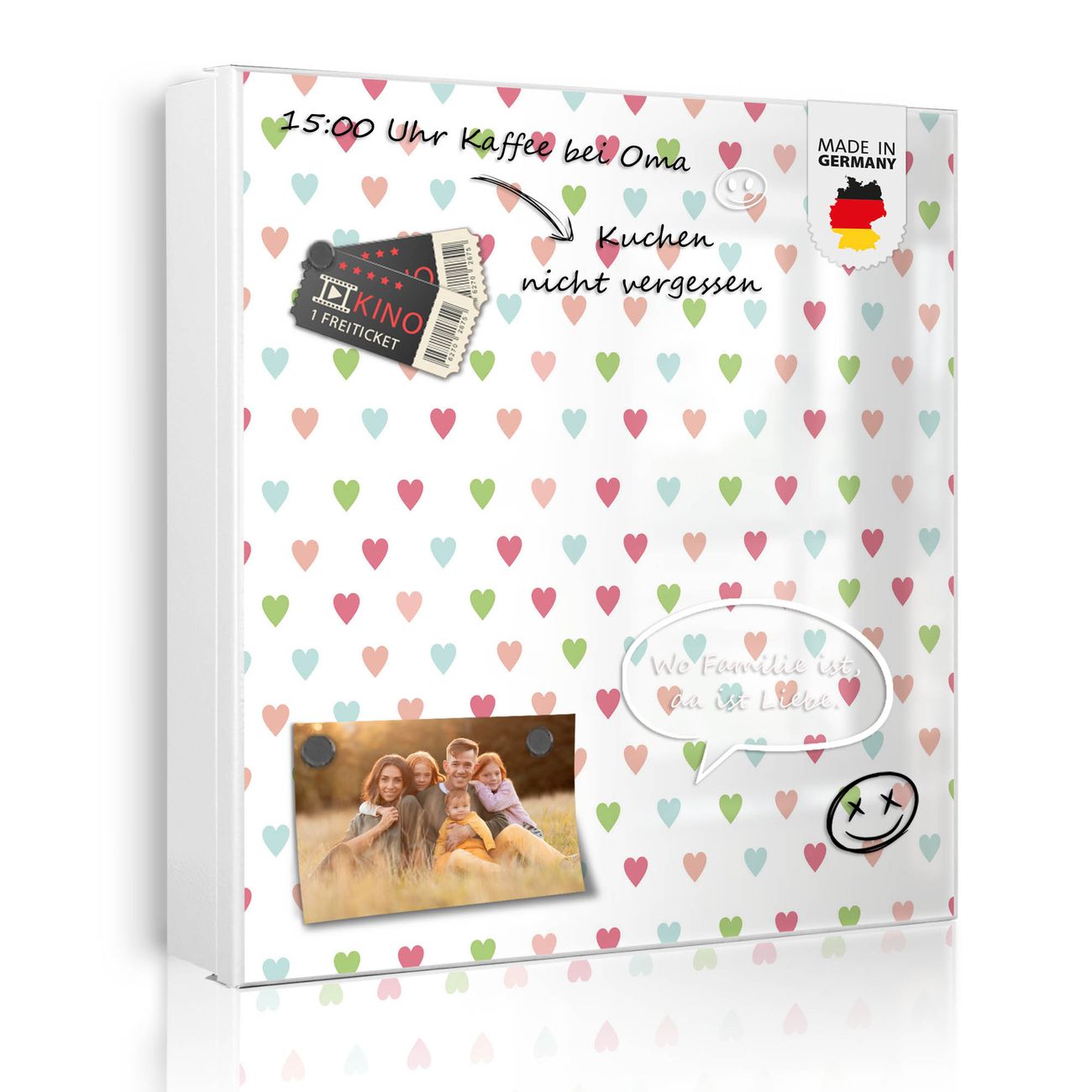 Bringe Ordnung und Eleganz in deinen Eingangsbereich mit dem banjado Schlüsselkasten Motiv Motiv Herzen Auf Weiß. Die moderne Schlüsselbox kombiniert funktionales Design mit hochwertiger Verarbeitung und wird so zu einem echten Hingucker in Flur, Büro oder Ferienwohnung. ✅ Stilvolle Schlüsselaufbewahrung mit Motiv Motiv Herzen Auf Weiß Der Design-Schlüsselkasten Motiv Motiv Herzen Auf Weiß bietet Platz für bis zu 32 Schlüssel, die auf 4 stabilen Reihen mit je 8 Haken übersichtlich verstaut werden. Mit seinen kompakten Maßen von 30 x 30 x 5 cm passt die Schlüsselbox perfekt auch in kleinere Räume. Der weiß lackierte Stahlkorpus mit links angeschlagenem Türscharnier harmoniert mit gedruckten Folie auf der Front und fügt sich nahtlos in jedes Wohnambiente ein. Ob als Schlüsselorganizer für Zuhause oder als praktische Lösung für Büros, Praxen und Gewerbe, der banjado Schlüsselkasten sorgt für Ordnung und Übersicht. Dank der magnetischen, mit Kreidestiften beschreibbaren Folie auf der Front kannst du Notizen anheften oder Termine direkt auf der Oberfläche festhalten. Die Schlüsselbox Motiv Motiv Herzen Auf Weiß zur Wandmontage wird inklusive Befestigungsmaterial geliefert und ist schnell angebracht. So hast du deine Schlüssel jederzeit griffbereit und zugleich stilvoll verstaut. Mit diesem banjado Schlüsselkasten Motiv Motiv Herzen Auf Weiß kombinierst du praktische Aufbewahrung mit stilvollem Wohndesign. Ob privat oder geschäftlich, die Schlüsselbox sorgt für mehr Ordnung, Übersicht und ein wohnliches Ambiente.Vorteile im Überblick