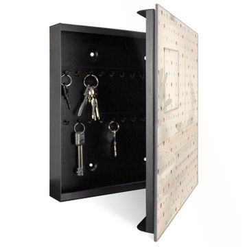 Bringe Ordnung und Eleganz in deinen Eingangsbereich mit dem banjado Schlüsselkasten Motiv Motiv Herzen bunt. Die moderne Schlüsselbox kombiniert funktionales Design mit hochwertiger Verarbeitung und wird so zu einem echten Hingucker in Flur, Büro oder Ferienwohnung. ✅ Stilvolle Schlüsselaufbewahrung mit Glasfront im Motiv Motiv Herzen bunt Der Design-Schlüsselkasten Motiv Motiv Herzen bunt bietet Platz für bis zu 50 Schlüssel, die auf 5 stabilen Reihen mit je 10 Haken übersichtlich verstaut werden. Mit seinen kompakten Maßen von 30 x 30 x 5 cm passt die Schlüsselbox perfekt auch in kleinere Räume. Der schwarz lackierte Stahlkorpus mit rechts angeschlagenem Türscharnier harmoniert mit der Glasfront und fügt sich nahtlos in jedes Wohnambiente ein. Ob als Schlüsselorganizer für Zuhause oder als praktische Lösung für Büros, Praxen und Gewerbe, der banjado Schlüsselkasten sorgt für Ordnung und Übersicht. Dank der magnetischen, mit Kreidestiften beschreibbaren Glasfront kannst du Notizen anheften oder Termine direkt auf der Oberfläche festhalten. Die Schlüsselbox Motiv Motiv Herzen bunt zur Wandmontage wird inklusive Befestigungsmaterial geliefert und ist schnell angebracht. So hast du deine Schlüssel jederzeit griffbereit und zugleich stilvoll verstaut. Mit diesem banjado Schlüsselkasten Motiv Motiv Herzen bunt kombinierst du praktische Aufbewahrung mit stilvollem Wohndesign. Ob privat oder geschäftlich, die Schlüsselbox sorgt für mehr Ordnung, Übersicht und ein wohnliches Ambiente.Vorteile im Überblick