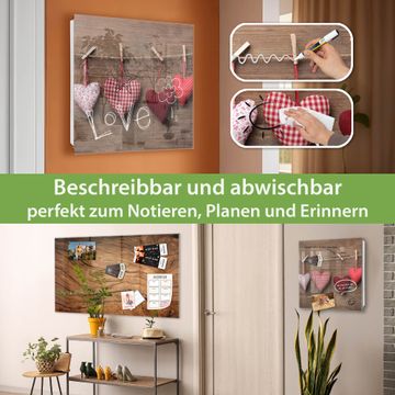 Bringe Ordnung und Eleganz in deinen Eingangsbereich mit dem banjado Schlüsselkasten Motiv Motiv Herzen. Die moderne Schlüsselbox kombiniert funktionales Design mit hochwertiger Verarbeitung und wird so zu einem echten Hingucker in Flur, Büro oder Ferienwohnung. ✅ Stilvolle Schlüsselaufbewahrung mit Glasfront im Motiv Motiv Herzen Der Design-Schlüsselkasten Motiv Motiv Herzen bietet Platz für bis zu 50 Schlüssel, die auf 5 stabilen Reihen mit je 10 Haken übersichtlich verstaut werden. Mit seinen kompakten Maßen von 30 x 30 x 5 cm passt die Schlüsselbox perfekt auch in kleinere Räume. Der weiß lackierte Stahlkorpus mit rechts angeschlagenem Türscharnier harmoniert mit der Glasfront und fügt sich nahtlos in jedes Wohnambiente ein. Ob als Schlüsselorganizer für Zuhause oder als praktische Lösung für Büros, Praxen und Gewerbe, der banjado Schlüsselkasten sorgt für Ordnung und Übersicht. Dank der magnetischen, mit Kreidestiften beschreibbaren Glasfront kannst du Notizen anheften oder Termine direkt auf der Oberfläche festhalten. Die Schlüsselbox Motiv Motiv Herzen zur Wandmontage wird inklusive Befestigungsmaterial geliefert und ist schnell angebracht. So hast du deine Schlüssel jederzeit griffbereit und zugleich stilvoll verstaut. Mit diesem banjado Schlüsselkasten Motiv Motiv Herzen kombinierst du praktische Aufbewahrung mit stilvollem Wohndesign. Ob privat oder geschäftlich, die Schlüsselbox sorgt für mehr Ordnung, Übersicht und ein wohnliches Ambiente.Vorteile im Überblick