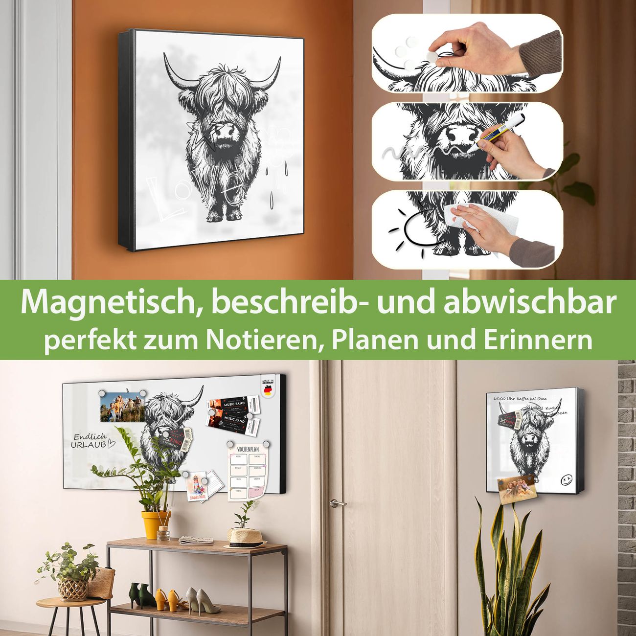 ✅ Magnetisch und mit Kreidestift beschreibbar, rechts angeschlagene TürOrdnung und Design in einem