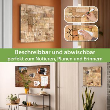 Bringe Ordnung und Eleganz in deinen Eingangsbereich mit dem banjado Schlüsselkasten Motiv Motiv Hölzernes Flickwerk. Die moderne Schlüsselbox kombiniert funktionales Design mit hochwertiger Verarbeitung und wird so zu einem echten Hingucker in Flur, Büro oder Ferienwohnung. ✅ Stilvolle Schlüsselaufbewahrung mit Glasfront im Motiv Motiv Hölzernes Flickwerk Der Design-Schlüsselkasten Motiv Motiv Hölzernes Flickwerk bietet Platz für bis zu 50 Schlüssel, die auf 5 stabilen Reihen mit je 10 Haken übersichtlich verstaut werden. Mit seinen kompakten Maßen von 30 x 30 x 5 cm passt die Schlüsselbox perfekt auch in kleinere Räume. Der schwarz lackierte Stahlkorpus mit rechts angeschlagenem Türscharnier harmoniert mit der Glasfront und fügt sich nahtlos in jedes Wohnambiente ein. Ob als Schlüsselorganizer für Zuhause oder als praktische Lösung für Büros, Praxen und Gewerbe, der banjado Schlüsselkasten sorgt für Ordnung und Übersicht. Dank der magnetischen, mit Kreidestiften beschreibbaren Glasfront kannst du Notizen anheften oder Termine direkt auf der Oberfläche festhalten. Die Schlüsselbox Motiv Motiv Hölzernes Flickwerk zur Wandmontage wird inklusive Befestigungsmaterial geliefert und ist schnell angebracht. So hast du deine Schlüssel jederzeit griffbereit und zugleich stilvoll verstaut. Mit diesem banjado Schlüsselkasten Motiv Motiv Hölzernes Flickwerk kombinierst du praktische Aufbewahrung mit stilvollem Wohndesign. Ob privat oder geschäftlich, die Schlüsselbox sorgt für mehr Ordnung, Übersicht und ein wohnliches Ambiente.Vorteile im Überblick