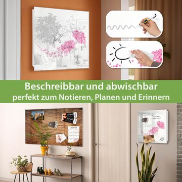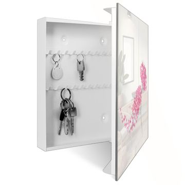 Bringe Ordnung und Eleganz in deinen Eingangsbereich mit dem banjado Schlüsselkasten Motiv Motiv Holunder Pink. Die moderne Schlüsselbox kombiniert funktionales Design mit hochwertiger Verarbeitung und wird so zu einem echten Hingucker in Flur, Büro oder Ferienwohnung. ✅ Stilvolle Schlüsselaufbewahrung mit Glasfront im Motiv Motiv Holunder Pink Der Design-Schlüsselkasten Motiv Motiv Holunder Pink bietet Platz für bis zu 50 Schlüssel, die auf 5 stabilen Reihen mit je 10 Haken übersichtlich verstaut werden. Mit seinen kompakten Maßen von 30 x 30 x 5 cm passt die Schlüsselbox perfekt auch in kleinere Räume. Der weiß lackierte Stahlkorpus mit rechts angeschlagenem Türscharnier harmoniert mit der Glasfront und fügt sich nahtlos in jedes Wohnambiente ein. Ob als Schlüsselorganizer für Zuhause oder als praktische Lösung für Büros, Praxen und Gewerbe, der banjado Schlüsselkasten sorgt für Ordnung und Übersicht. Dank der magnetischen, mit Kreidestiften beschreibbaren Glasfront kannst du Notizen anheften oder Termine direkt auf der Oberfläche festhalten. Die Schlüsselbox Motiv Motiv Holunder Pink zur Wandmontage wird inklusive Befestigungsmaterial geliefert und ist schnell angebracht. So hast du deine Schlüssel jederzeit griffbereit und zugleich stilvoll verstaut. Mit diesem banjado Schlüsselkasten Motiv Motiv Holunder Pink kombinierst du praktische Aufbewahrung mit stilvollem Wohndesign. Ob privat oder geschäftlich, die Schlüsselbox sorgt für mehr Ordnung, Übersicht und ein wohnliches Ambiente.Vorteile im Überblick