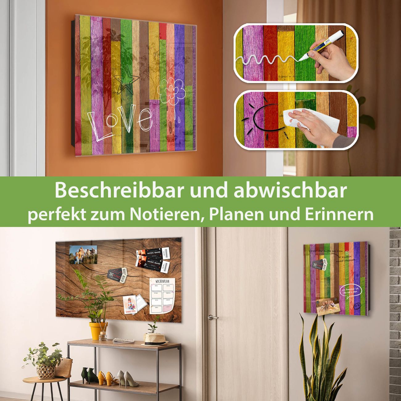 ✅ Magnetisch und mit Kreidestift beschreibbar, gehärtetes Glas, links angeschlagene TürOrdnung und Design in einem