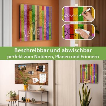 Bringe Ordnung und Eleganz in deinen Eingangsbereich mit dem banjado Schlüsselkasten Motiv Motiv Holz Collage Bunt. Die moderne Schlüsselbox kombiniert funktionales Design mit hochwertiger Verarbeitung und wird so zu einem echten Hingucker in Flur, Büro oder Ferienwohnung. ✅ Stilvolle Schlüsselaufbewahrung mit Glasfront im Motiv Motiv Holz Collage Bunt Der Design-Schlüsselkasten Motiv Motiv Holz Collage Bunt bietet Platz für bis zu 50 Schlüssel, die auf 5 stabilen Reihen mit je 10 Haken übersichtlich verstaut werden. Mit seinen kompakten Maßen von 30 x 30 x 5 cm passt die Schlüsselbox perfekt auch in kleinere Räume. Der schwarz lackierte Stahlkorpus mit rechts angeschlagenem Türscharnier harmoniert mit der Glasfront und fügt sich nahtlos in jedes Wohnambiente ein. Ob als Schlüsselorganizer für Zuhause oder als praktische Lösung für Büros, Praxen und Gewerbe, der banjado Schlüsselkasten sorgt für Ordnung und Übersicht. Dank der magnetischen, mit Kreidestiften beschreibbaren Glasfront kannst du Notizen anheften oder Termine direkt auf der Oberfläche festhalten. Die Schlüsselbox Motiv Motiv Holz Collage Bunt zur Wandmontage wird inklusive Befestigungsmaterial geliefert und ist schnell angebracht. So hast du deine Schlüssel jederzeit griffbereit und zugleich stilvoll verstaut. Mit diesem banjado Schlüsselkasten Motiv Motiv Holz Collage Bunt kombinierst du praktische Aufbewahrung mit stilvollem Wohndesign. Ob privat oder geschäftlich, die Schlüsselbox sorgt für mehr Ordnung, Übersicht und ein wohnliches Ambiente.Vorteile im Überblick