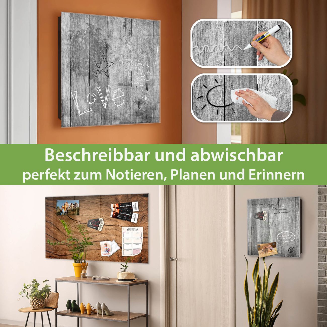 ✅ Magnetisch und mit Kreidestift beschreibbar, gehärtetes Glas, rechts angeschlagene TürOrdnung und Design in einem