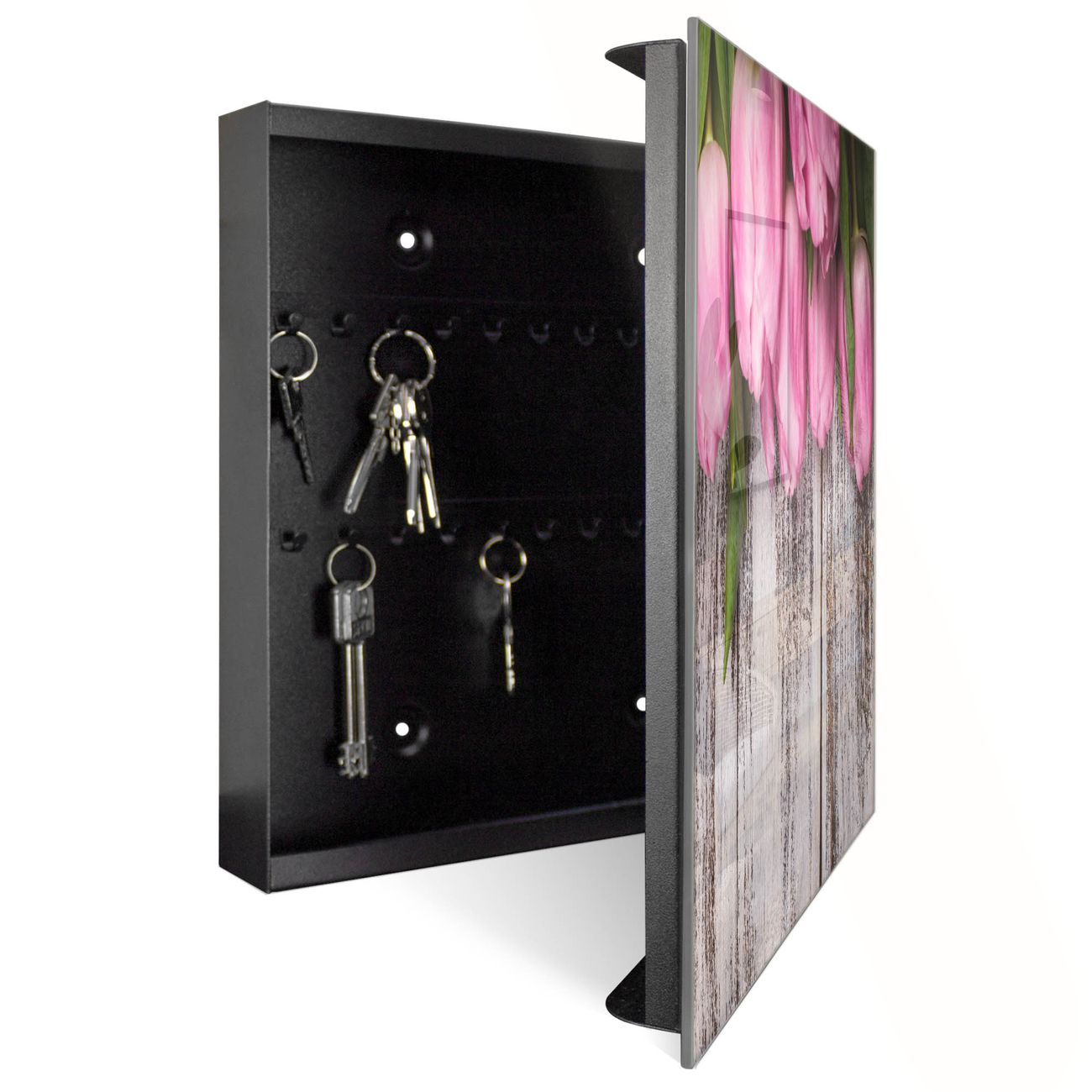 Schlüsselkasten Glas Motiv Holz und Tulpen
