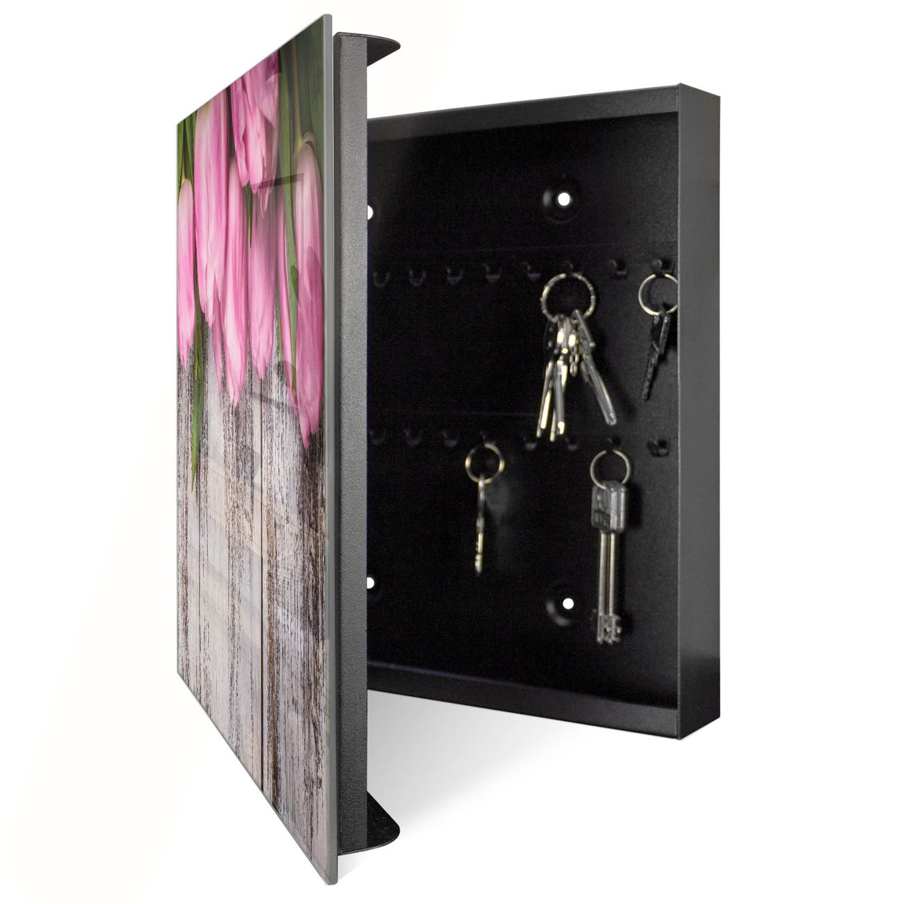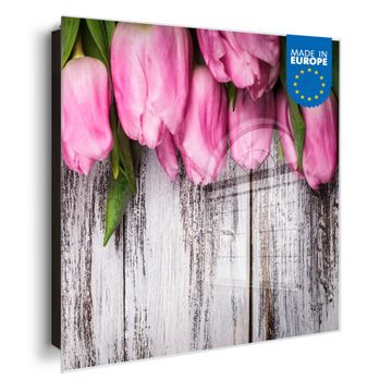 Schlüsselkasten Glas Motiv Holz und Tulpen