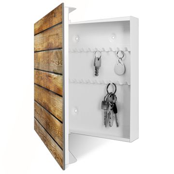 Bringe Ordnung und Eleganz in deinen Eingangsbereich mit dem banjado Schlüsselkasten Motiv Motiv Holzbretter. Die moderne Schlüsselbox kombiniert funktionales Design mit hochwertiger Verarbeitung und wird so zu einem echten Hingucker in Flur, Büro oder Ferienwohnung. ✅ Stilvolle Schlüsselaufbewahrung mit Glasfront im Motiv Motiv Holzbretter Der Design-Schlüsselkasten Motiv Motiv Holzbretter bietet Platz für bis zu 50 Schlüssel, die auf 5 stabilen Reihen mit je 10 Haken übersichtlich verstaut werden. Mit seinen kompakten Maßen von 30 x 30 x 5 cm passt die Schlüsselbox perfekt auch in kleinere Räume. Der weiß lackierte Stahlkorpus mit rechts angeschlagenem Türscharnier harmoniert mit der Glasfront und fügt sich nahtlos in jedes Wohnambiente ein. Ob als Schlüsselorganizer für Zuhause oder als praktische Lösung für Büros, Praxen und Gewerbe, der banjado Schlüsselkasten sorgt für Ordnung und Übersicht. Dank der magnetischen, mit Kreidestiften beschreibbaren Glasfront kannst du Notizen anheften oder Termine direkt auf der Oberfläche festhalten. Die Schlüsselbox Motiv Motiv Holzbretter zur Wandmontage wird inklusive Befestigungsmaterial geliefert und ist schnell angebracht. So hast du deine Schlüssel jederzeit griffbereit und zugleich stilvoll verstaut. Mit diesem banjado Schlüsselkasten Motiv Motiv Holzbretter kombinierst du praktische Aufbewahrung mit stilvollem Wohndesign. Ob privat oder geschäftlich, die Schlüsselbox sorgt für mehr Ordnung, Übersicht und ein wohnliches Ambiente.Vorteile im Überblick