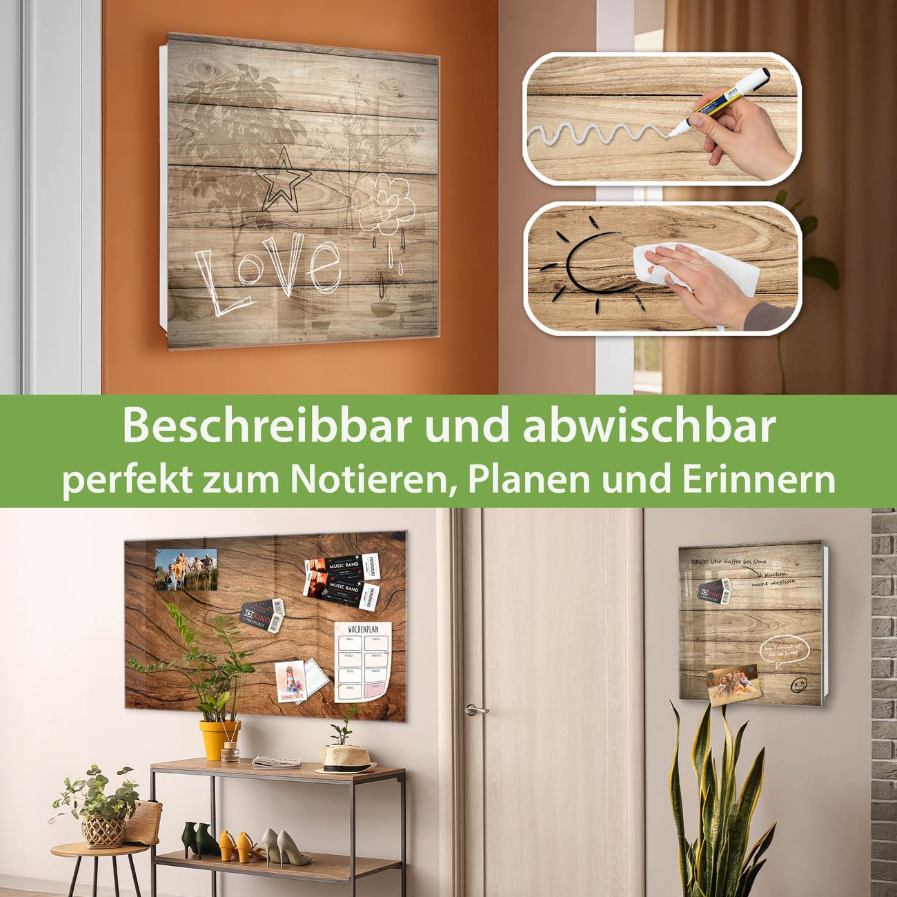 ✅ Magnetisch und mit Kreidestift beschreibbar, gehärtetes Glas, rechts angeschlagene TürOrdnung und Design in einem