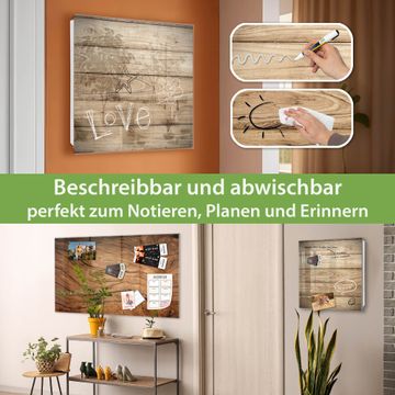 Bringe Ordnung und Eleganz in deinen Eingangsbereich mit dem banjado Schlüsselkasten Motiv Motiv Holzplanken. Die moderne Schlüsselbox kombiniert funktionales Design mit hochwertiger Verarbeitung und wird so zu einem echten Hingucker in Flur, Büro oder Ferienwohnung. ✅ Stilvolle Schlüsselaufbewahrung mit Glasfront im Motiv Motiv Holzplanken Der Design-Schlüsselkasten Motiv Motiv Holzplanken bietet Platz für bis zu 50 Schlüssel, die auf 5 stabilen Reihen mit je 10 Haken übersichtlich verstaut werden. Mit seinen kompakten Maßen von 30 x 30 x 5 cm passt die Schlüsselbox perfekt auch in kleinere Räume. Der weiß lackierte Stahlkorpus mit rechts angeschlagenem Türscharnier harmoniert mit der Glasfront und fügt sich nahtlos in jedes Wohnambiente ein. Ob als Schlüsselorganizer für Zuhause oder als praktische Lösung für Büros, Praxen und Gewerbe, der banjado Schlüsselkasten sorgt für Ordnung und Übersicht. Dank der magnetischen, mit Kreidestiften beschreibbaren Glasfront kannst du Notizen anheften oder Termine direkt auf der Oberfläche festhalten. Die Schlüsselbox Motiv Motiv Holzplanken zur Wandmontage wird inklusive Befestigungsmaterial geliefert und ist schnell angebracht. So hast du deine Schlüssel jederzeit griffbereit und zugleich stilvoll verstaut. Mit diesem banjado Schlüsselkasten Motiv Motiv Holzplanken kombinierst du praktische Aufbewahrung mit stilvollem Wohndesign. Ob privat oder geschäftlich, die Schlüsselbox sorgt für mehr Ordnung, Übersicht und ein wohnliches Ambiente.Vorteile im Überblick
