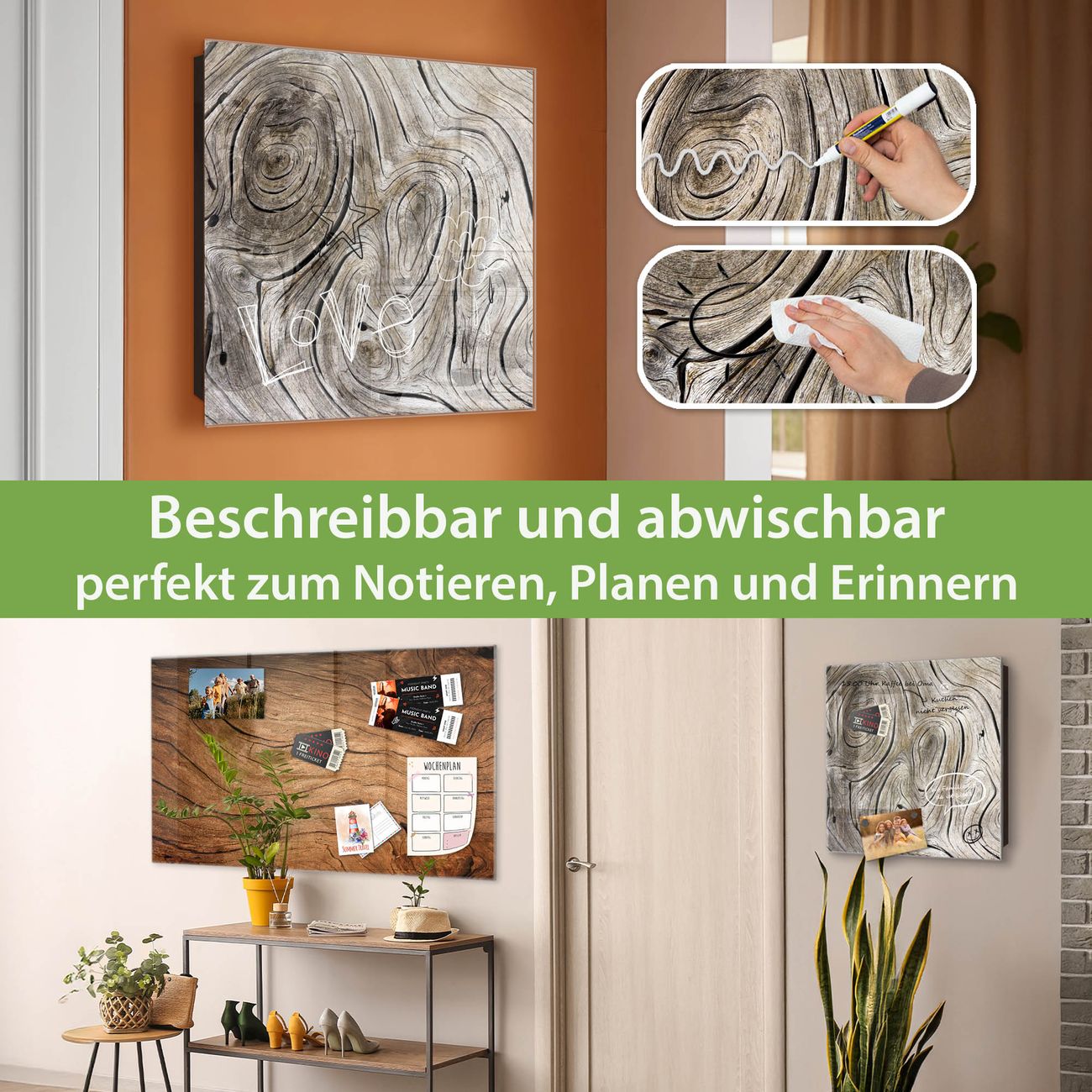 ✅ Magnetisch und mit Kreidestift beschreibbar, gehärtetes Glas, rechts angeschlagene TürOrdnung und Design in einem