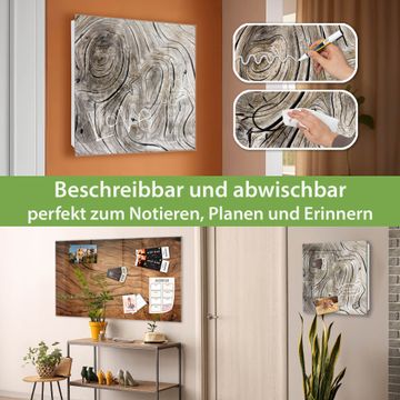 Bringe Ordnung und Eleganz in deinen Eingangsbereich mit dem banjado Schlüsselkasten Motiv Motiv Holzwirbel. Die moderne Schlüsselbox kombiniert funktionales Design mit hochwertiger Verarbeitung und wird so zu einem echten Hingucker in Flur, Büro oder Ferienwohnung. ✅ Stilvolle Schlüsselaufbewahrung mit Glasfront im Motiv Motiv Holzwirbel Der Design-Schlüsselkasten Motiv Motiv Holzwirbel bietet Platz für bis zu 50 Schlüssel, die auf 5 stabilen Reihen mit je 10 Haken übersichtlich verstaut werden. Mit seinen kompakten Maßen von 30 x 30 x 5 cm passt die Schlüsselbox perfekt auch in kleinere Räume. Der weiß lackierte Stahlkorpus mit rechts angeschlagenem Türscharnier harmoniert mit der Glasfront und fügt sich nahtlos in jedes Wohnambiente ein. Ob als Schlüsselorganizer für Zuhause oder als praktische Lösung für Büros, Praxen und Gewerbe, der banjado Schlüsselkasten sorgt für Ordnung und Übersicht. Dank der magnetischen, mit Kreidestiften beschreibbaren Glasfront kannst du Notizen anheften oder Termine direkt auf der Oberfläche festhalten. Die Schlüsselbox Motiv Motiv Holzwirbel zur Wandmontage wird inklusive Befestigungsmaterial geliefert und ist schnell angebracht. So hast du deine Schlüssel jederzeit griffbereit und zugleich stilvoll verstaut. Mit diesem banjado Schlüsselkasten Motiv Motiv Holzwirbel kombinierst du praktische Aufbewahrung mit stilvollem Wohndesign. Ob privat oder geschäftlich, die Schlüsselbox sorgt für mehr Ordnung, Übersicht und ein wohnliches Ambiente.Vorteile im Überblick