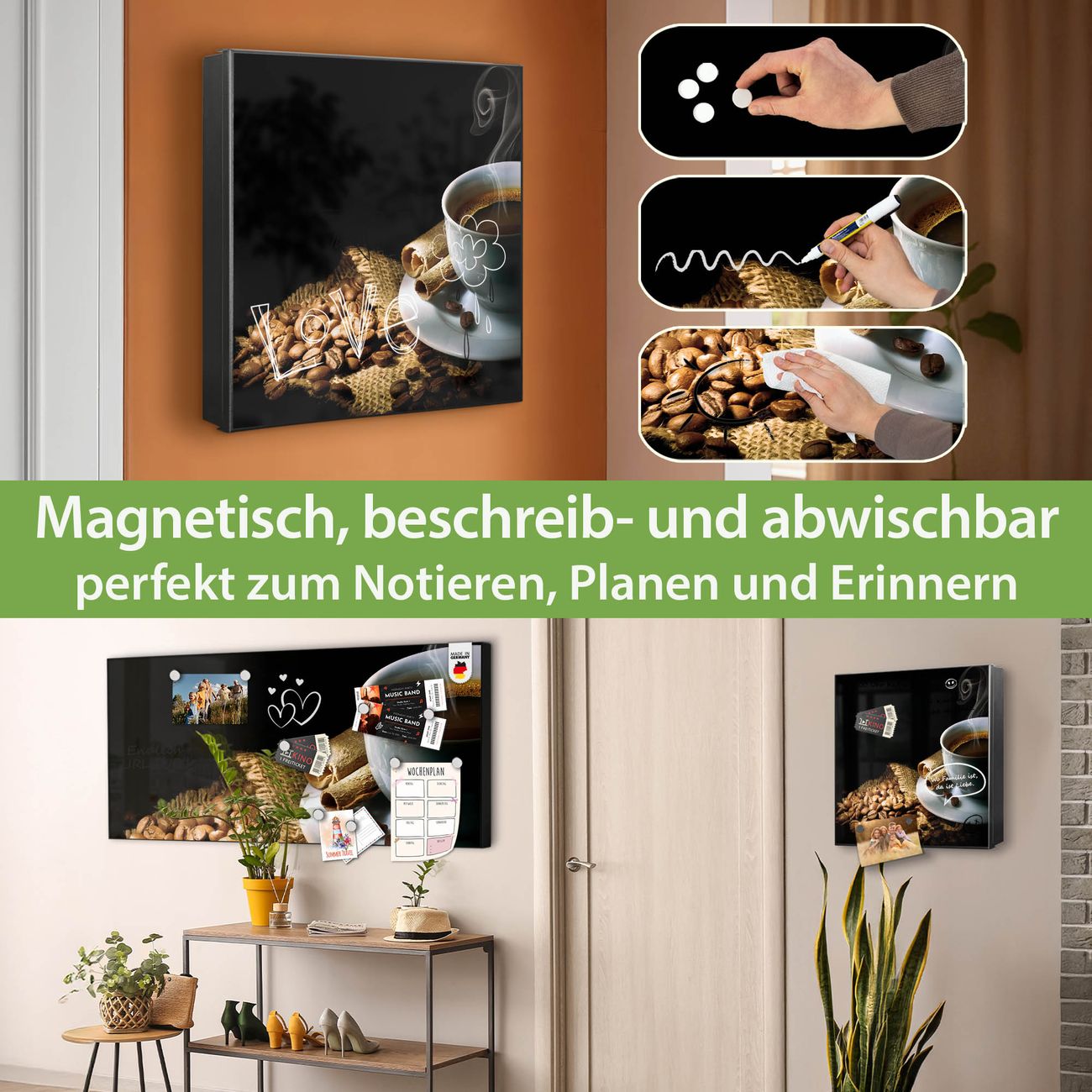 ✅ Magnetisch und mit Kreidestift beschreibbar, links angeschlagene TürOrdnung und Design in einem