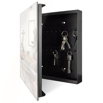 Bringe Ordnung und Eleganz in deinen Eingangsbereich mit dem banjado Schlüsselkasten Motiv Motiv Hundeheimat. Die moderne Schlüsselbox kombiniert funktionales Design mit hochwertiger Verarbeitung und wird so zu einem echten Hingucker in Flur, Büro oder Ferienwohnung. ✅ Stilvolle Schlüsselaufbewahrung mit Glasfront im Motiv Motiv Hundeheimat Der Design-Schlüsselkasten Motiv Motiv Hundeheimat bietet Platz für bis zu 50 Schlüssel, die auf 5 stabilen Reihen mit je 10 Haken übersichtlich verstaut werden. Mit seinen kompakten Maßen von 30 x 30 x 5 cm passt die Schlüsselbox perfekt auch in kleinere Räume. Der schwarz lackierte Stahlkorpus mit rechts angeschlagenem Türscharnier harmoniert mit der Glasfront und fügt sich nahtlos in jedes Wohnambiente ein. Ob als Schlüsselorganizer für Zuhause oder als praktische Lösung für Büros, Praxen und Gewerbe, der banjado Schlüsselkasten sorgt für Ordnung und Übersicht. Dank der magnetischen, mit Kreidestiften beschreibbaren Glasfront kannst du Notizen anheften oder Termine direkt auf der Oberfläche festhalten. Die Schlüsselbox Motiv Motiv Hundeheimat zur Wandmontage wird inklusive Befestigungsmaterial geliefert und ist schnell angebracht. So hast du deine Schlüssel jederzeit griffbereit und zugleich stilvoll verstaut. Mit diesem banjado Schlüsselkasten Motiv Motiv Hundeheimat kombinierst du praktische Aufbewahrung mit stilvollem Wohndesign. Ob privat oder geschäftlich, die Schlüsselbox sorgt für mehr Ordnung, Übersicht und ein wohnliches Ambiente.Vorteile im Überblick
