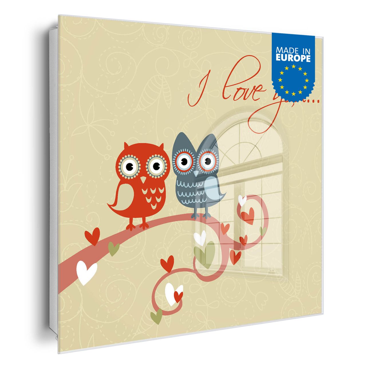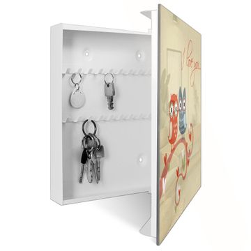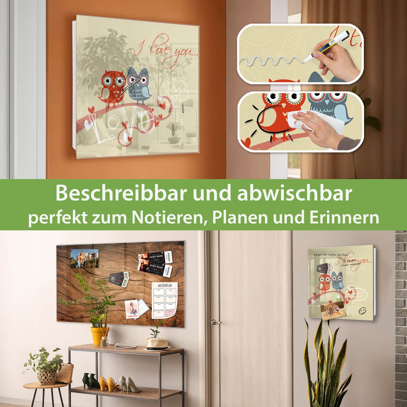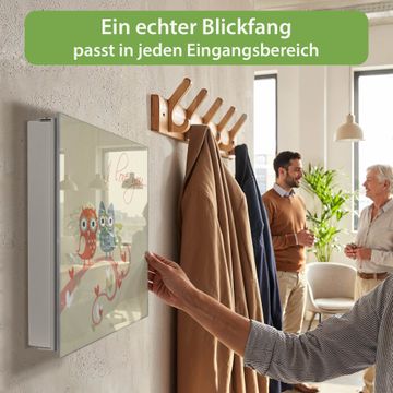 Bringe Ordnung und Eleganz in deinen Eingangsbereich mit dem banjado Schlüsselkasten Motiv Motiv I Love You. Die moderne Schlüsselbox kombiniert funktionales Design mit hochwertiger Verarbeitung und wird so zu einem echten Hingucker in Flur, Büro oder Ferienwohnung. ✅ Stilvolle Schlüsselaufbewahrung mit Glasfront im Motiv Motiv I Love You Der Design-Schlüsselkasten Motiv Motiv I Love You bietet Platz für bis zu 50 Schlüssel, die auf 5 stabilen Reihen mit je 10 Haken übersichtlich verstaut werden. Mit seinen kompakten Maßen von 30 x 30 x 5 cm passt die Schlüsselbox perfekt auch in kleinere Räume. Der weiß lackierte Stahlkorpus mit rechts angeschlagenem Türscharnier harmoniert mit der Glasfront und fügt sich nahtlos in jedes Wohnambiente ein. Ob als Schlüsselorganizer für Zuhause oder als praktische Lösung für Büros, Praxen und Gewerbe, der banjado Schlüsselkasten sorgt für Ordnung und Übersicht. Dank der magnetischen, mit Kreidestiften beschreibbaren Glasfront kannst du Notizen anheften oder Termine direkt auf der Oberfläche festhalten. Die Schlüsselbox Motiv Motiv I Love You zur Wandmontage wird inklusive Befestigungsmaterial geliefert und ist schnell angebracht. So hast du deine Schlüssel jederzeit griffbereit und zugleich stilvoll verstaut. Mit diesem banjado Schlüsselkasten Motiv Motiv I Love You kombinierst du praktische Aufbewahrung mit stilvollem Wohndesign. Ob privat oder geschäftlich, die Schlüsselbox sorgt für mehr Ordnung, Übersicht und ein wohnliches Ambiente.Vorteile im Überblick