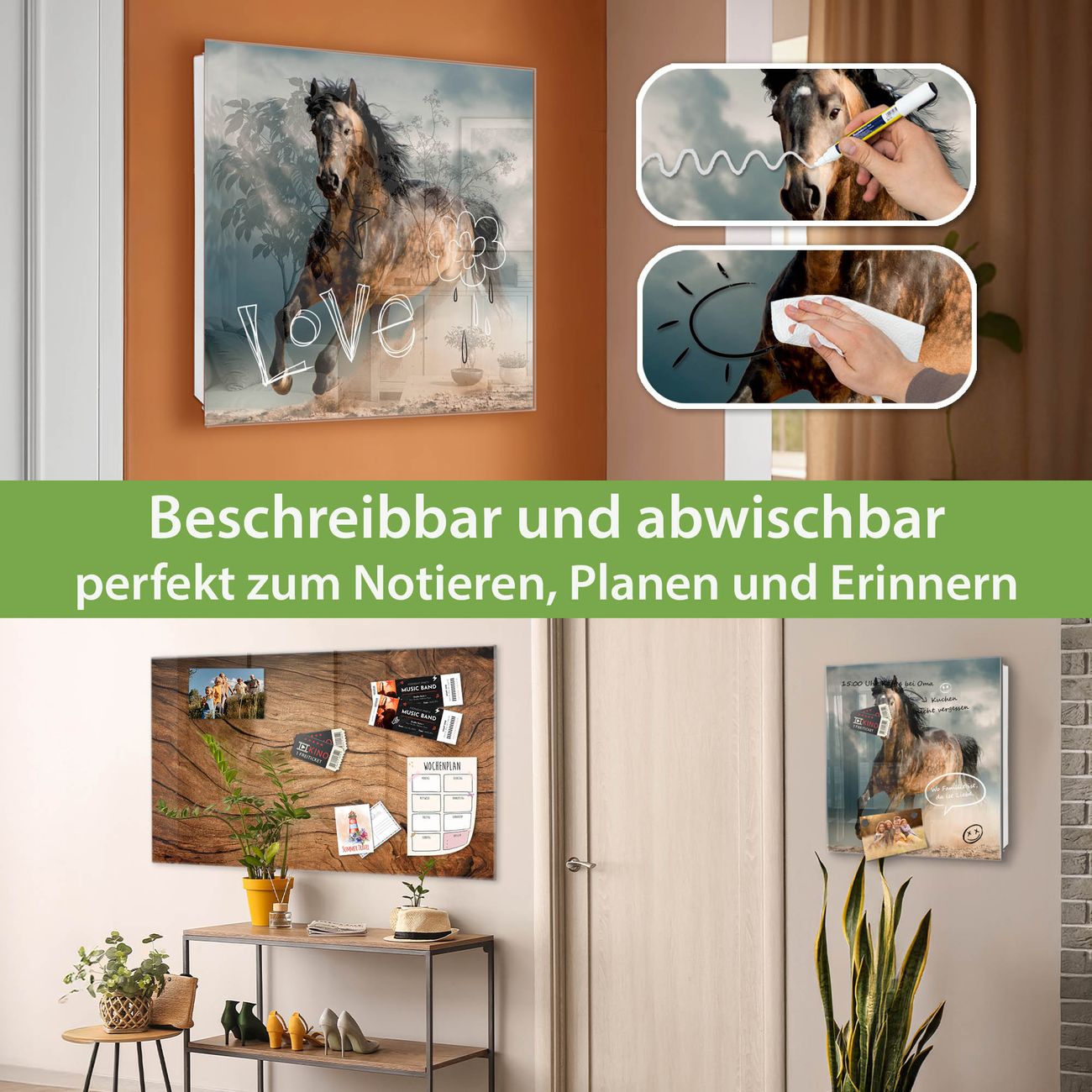 ✅ Magnetisch und mit Kreidestift beschreibbar, gehärtetes Glas, rechts angeschlagene TürOrdnung und Design in einem