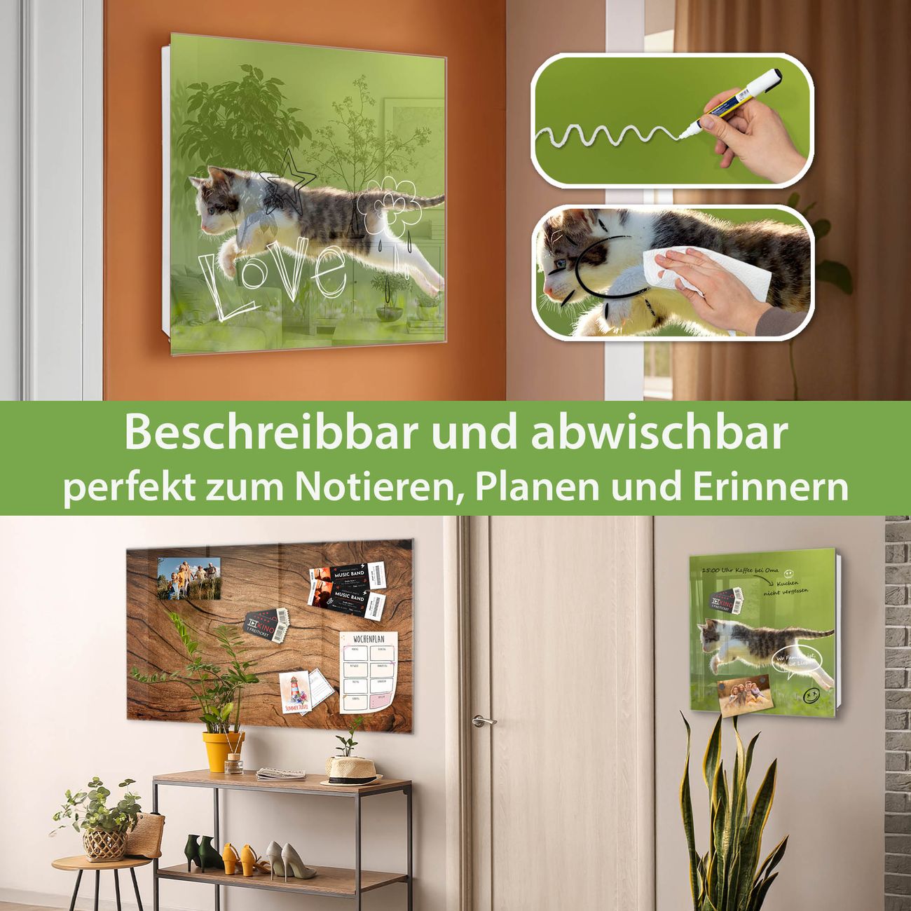 ✅ Magnetisch und mit Kreidestift beschreibbar, gehärtetes Glas, rechts angeschlagene TürOrdnung und Design in einem