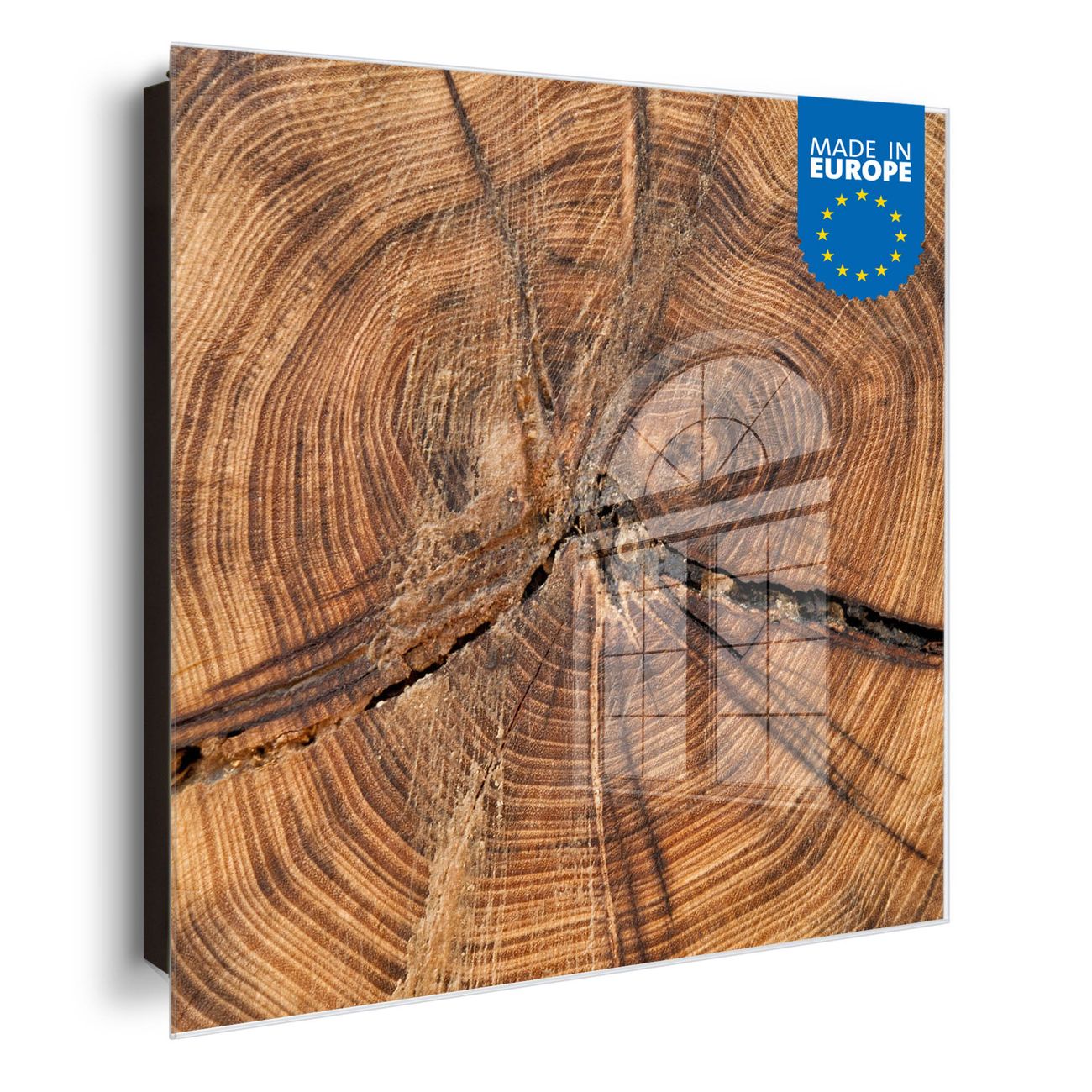 Bringe Ordnung und Eleganz in deinen Eingangsbereich mit dem banjado Schlüsselkasten Motiv Motiv Jahresringe. Die moderne Schlüsselbox kombiniert funktionales Design mit hochwertiger Verarbeitung und wird so zu einem echten Hingucker in Flur, Büro oder Ferienwohnung. ✅ Stilvolle Schlüsselaufbewahrung mit Glasfront im Motiv Motiv Jahresringe Der Design-Schlüsselkasten Motiv Motiv Jahresringe bietet Platz für bis zu 50 Schlüssel, die auf 5 stabilen Reihen mit je 10 Haken übersichtlich verstaut werden. Mit seinen kompakten Maßen von 30 x 30 x 5 cm passt die Schlüsselbox perfekt auch in kleinere Räume. Der schwarz lackierte Stahlkorpus mit rechts angeschlagenem Türscharnier harmoniert mit der Glasfront und fügt sich nahtlos in jedes Wohnambiente ein. Ob als Schlüsselorganizer für Zuhause oder als praktische Lösung für Büros, Praxen und Gewerbe, der banjado Schlüsselkasten sorgt für Ordnung und Übersicht. Dank der magnetischen, mit Kreidestiften beschreibbaren Glasfront kannst du Notizen anheften oder Termine direkt auf der Oberfläche festhalten. Die Schlüsselbox Motiv Motiv Jahresringe zur Wandmontage wird inklusive Befestigungsmaterial geliefert und ist schnell angebracht. So hast du deine Schlüssel jederzeit griffbereit und zugleich stilvoll verstaut. Mit diesem banjado Schlüsselkasten Motiv Motiv Jahresringe kombinierst du praktische Aufbewahrung mit stilvollem Wohndesign. Ob privat oder geschäftlich, die Schlüsselbox sorgt für mehr Ordnung, Übersicht und ein wohnliches Ambiente.Vorteile im Überblick
