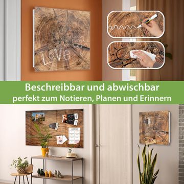 Bringe Ordnung und Eleganz in deinen Eingangsbereich mit dem banjado Schlüsselkasten Motiv Motiv Jahresringe. Die moderne Schlüsselbox kombiniert funktionales Design mit hochwertiger Verarbeitung und wird so zu einem echten Hingucker in Flur, Büro oder Ferienwohnung. ✅ Stilvolle Schlüsselaufbewahrung mit Glasfront im Motiv Motiv Jahresringe Der Design-Schlüsselkasten Motiv Motiv Jahresringe bietet Platz für bis zu 50 Schlüssel, die auf 5 stabilen Reihen mit je 10 Haken übersichtlich verstaut werden. Mit seinen kompakten Maßen von 30 x 30 x 5 cm passt die Schlüsselbox perfekt auch in kleinere Räume. Der weiß lackierte Stahlkorpus mit rechts angeschlagenem Türscharnier harmoniert mit der Glasfront und fügt sich nahtlos in jedes Wohnambiente ein. Ob als Schlüsselorganizer für Zuhause oder als praktische Lösung für Büros, Praxen und Gewerbe, der banjado Schlüsselkasten sorgt für Ordnung und Übersicht. Dank der magnetischen, mit Kreidestiften beschreibbaren Glasfront kannst du Notizen anheften oder Termine direkt auf der Oberfläche festhalten. Die Schlüsselbox Motiv Motiv Jahresringe zur Wandmontage wird inklusive Befestigungsmaterial geliefert und ist schnell angebracht. So hast du deine Schlüssel jederzeit griffbereit und zugleich stilvoll verstaut. Mit diesem banjado Schlüsselkasten Motiv Motiv Jahresringe kombinierst du praktische Aufbewahrung mit stilvollem Wohndesign. Ob privat oder geschäftlich, die Schlüsselbox sorgt für mehr Ordnung, Übersicht und ein wohnliches Ambiente.Vorteile im Überblick