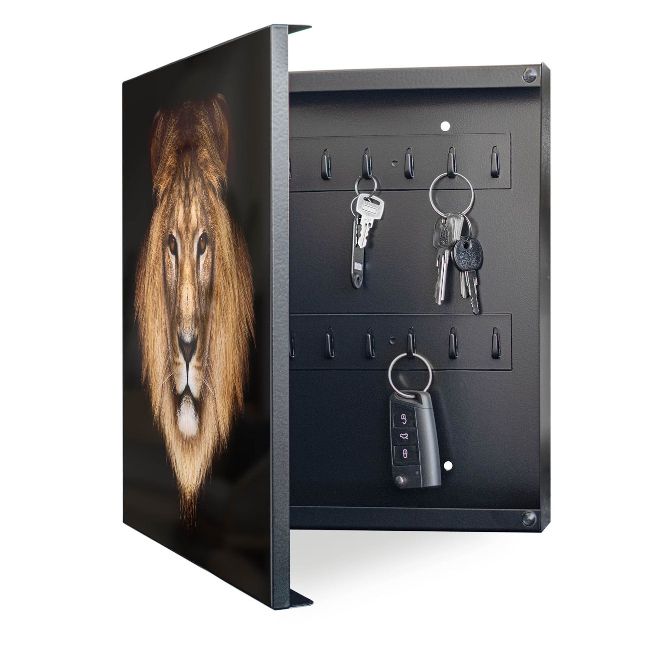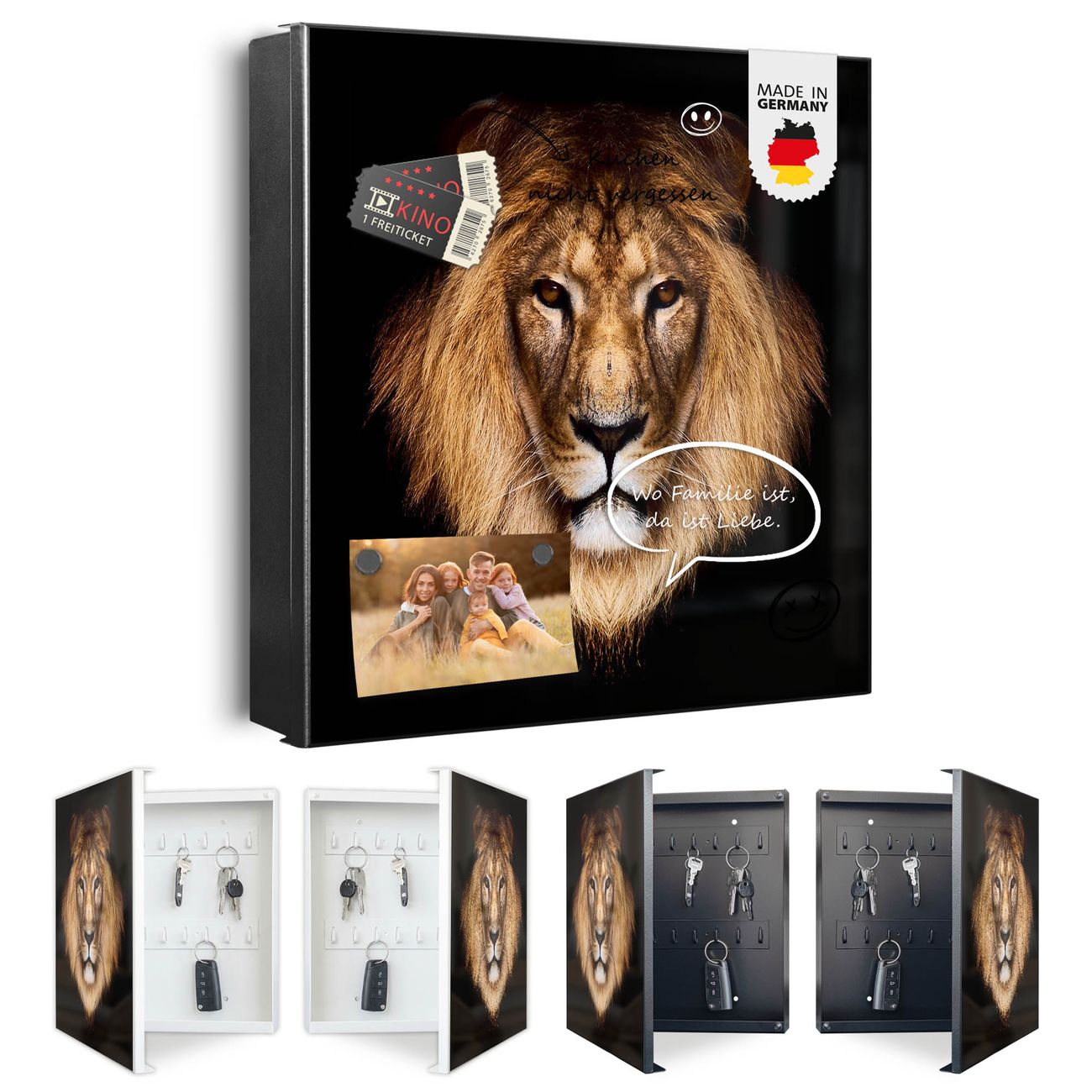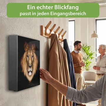 Bringe Ordnung und Eleganz in deinen Eingangsbereich mit dem banjado Schlüsselkasten Motiv Motiv Jakob. Die moderne Schlüsselbox kombiniert funktionales Design mit hochwertiger Verarbeitung und wird so zu einem echten Hingucker in Flur, Büro oder Ferienwohnung. ✅ Stilvolle Schlüsselaufbewahrung mit Motiv Motiv Jakob Der Design-Schlüsselkasten Motiv Motiv Jakob bietet Platz für bis zu 32 Schlüssel, die auf 4 stabilen Reihen mit je 8 Haken übersichtlich verstaut werden. Mit seinen kompakten Maßen von 30 x 30 x 5 cm passt die Schlüsselbox perfekt auch in kleinere Räume. Der schwarz lackierte Stahlkorpus mit links angeschlagenem Türscharnier harmoniert mit gedruckten Folie auf der Front und fügt sich nahtlos in jedes Wohnambiente ein. Ob als Schlüsselorganizer für Zuhause oder als praktische Lösung für Büros, Praxen und Gewerbe, der banjado Schlüsselkasten sorgt für Ordnung und Übersicht. Dank der magnetischen, mit Kreidestiften beschreibbaren Folie auf der Front kannst du Notizen anheften oder Termine direkt auf der Oberfläche festhalten. Die Schlüsselbox Motiv Motiv Jakob zur Wandmontage wird inklusive Befestigungsmaterial geliefert und ist schnell angebracht. So hast du deine Schlüssel jederzeit griffbereit und zugleich stilvoll verstaut. Mit diesem banjado Schlüsselkasten Motiv Motiv Jakob kombinierst du praktische Aufbewahrung mit stilvollem Wohndesign. Ob privat oder geschäftlich, die Schlüsselbox sorgt für mehr Ordnung, Übersicht und ein wohnliches Ambiente.Vorteile im Überblick