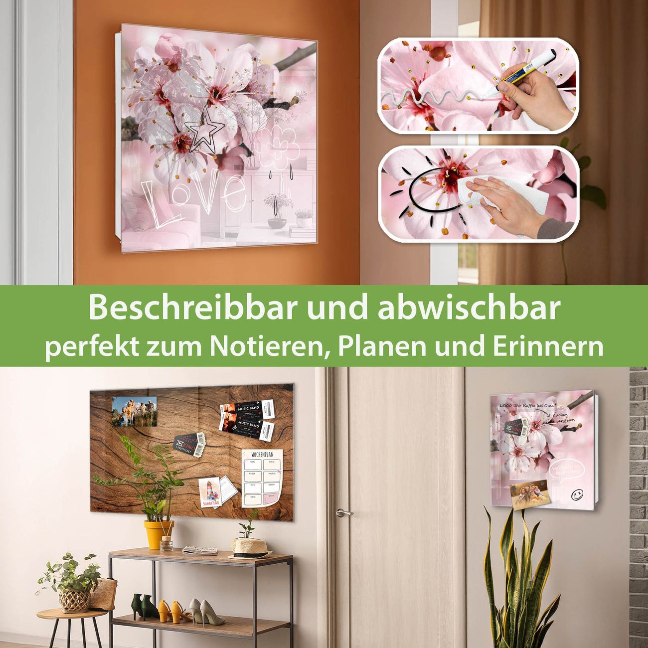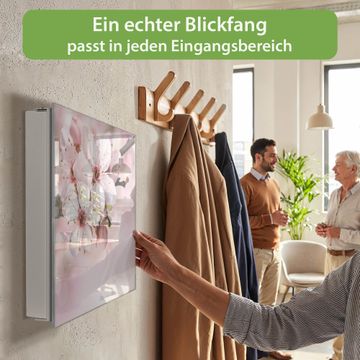 Bringe Ordnung und Eleganz in deinen Eingangsbereich mit dem banjado Schlüsselkasten Motiv Motiv Japanische Kirsche. Die moderne Schlüsselbox kombiniert funktionales Design mit hochwertiger Verarbeitung und wird so zu einem echten Hingucker in Flur, Büro oder Ferienwohnung. ✅ Stilvolle Schlüsselaufbewahrung mit Glasfront im Motiv Motiv Japanische Kirsche Der Design-Schlüsselkasten Motiv Motiv Japanische Kirsche bietet Platz für bis zu 50 Schlüssel, die auf 5 stabilen Reihen mit je 10 Haken übersichtlich verstaut werden. Mit seinen kompakten Maßen von 30 x 30 x 5 cm passt die Schlüsselbox perfekt auch in kleinere Räume. Der weiß lackierte Stahlkorpus mit rechts angeschlagenem Türscharnier harmoniert mit der Glasfront und fügt sich nahtlos in jedes Wohnambiente ein. Ob als Schlüsselorganizer für Zuhause oder als praktische Lösung für Büros, Praxen und Gewerbe, der banjado Schlüsselkasten sorgt für Ordnung und Übersicht. Dank der magnetischen, mit Kreidestiften beschreibbaren Glasfront kannst du Notizen anheften oder Termine direkt auf der Oberfläche festhalten. Die Schlüsselbox Motiv Motiv Japanische Kirsche zur Wandmontage wird inklusive Befestigungsmaterial geliefert und ist schnell angebracht. So hast du deine Schlüssel jederzeit griffbereit und zugleich stilvoll verstaut. Mit diesem banjado Schlüsselkasten Motiv Motiv Japanische Kirsche kombinierst du praktische Aufbewahrung mit stilvollem Wohndesign. Ob privat oder geschäftlich, die Schlüsselbox sorgt für mehr Ordnung, Übersicht und ein wohnliches Ambiente.Vorteile im Überblick
