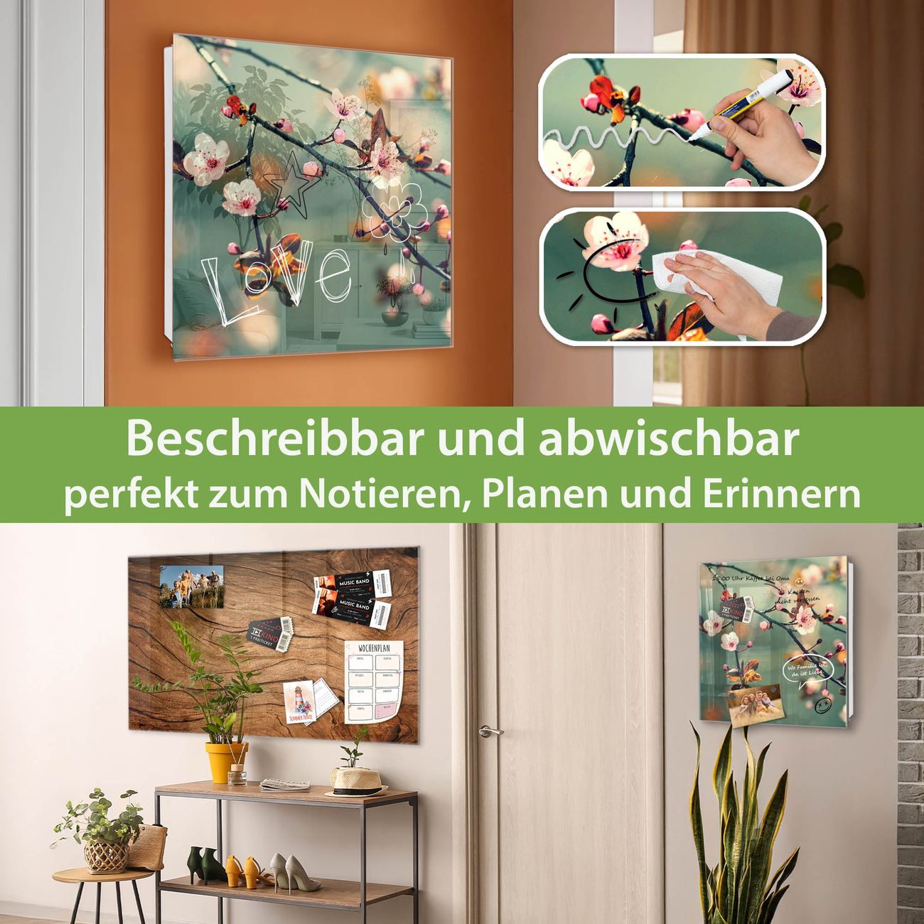 ✅ Magnetisch und mit Kreidestift beschreibbar, gehärtetes Glas, rechts angeschlagene TürOrdnung und Design in einem