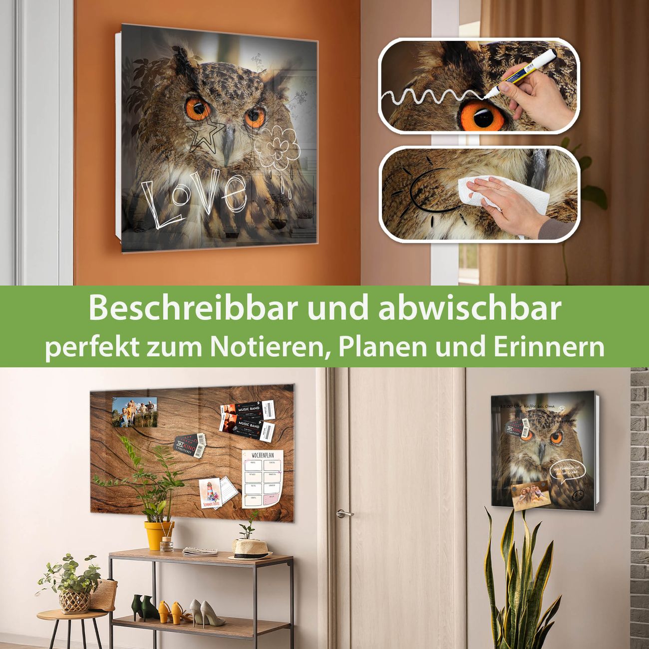 ✅ Magnetisch und mit Kreidestift beschreibbar, gehärtetes Glas, rechts angeschlagene TürOrdnung und Design in einem