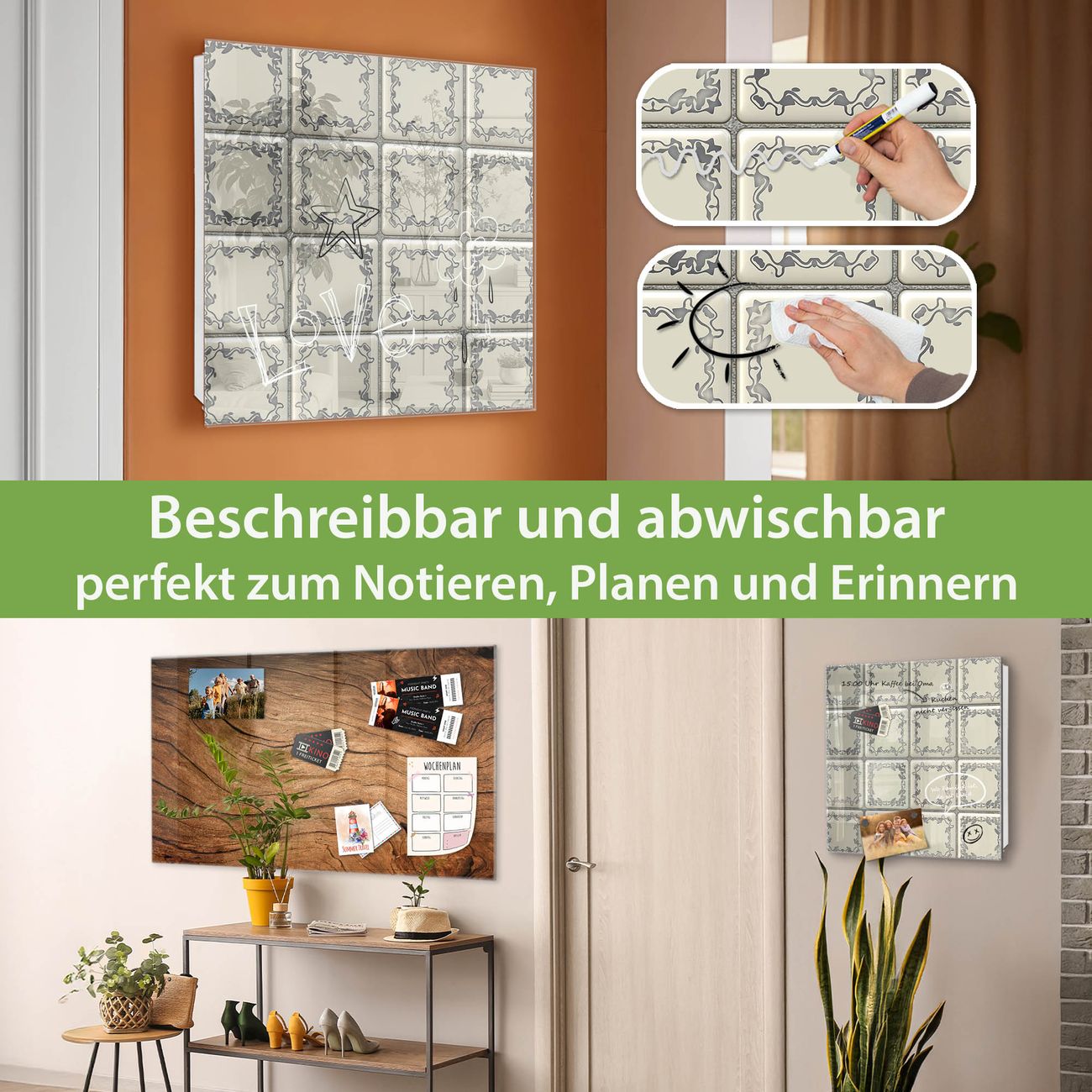 ✅ Magnetisch und mit Kreidestift beschreibbar, gehärtetes Glas, rechts angeschlagene TürOrdnung und Design in einem