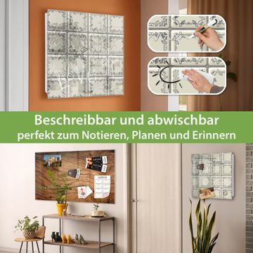 Bringe Ordnung und Eleganz in deinen Eingangsbereich mit dem banjado Schlüsselkasten Motiv Motiv Kacheln. Die moderne Schlüsselbox kombiniert funktionales Design mit hochwertiger Verarbeitung und wird so zu einem echten Hingucker in Flur, Büro oder Ferienwohnung. ✅ Stilvolle Schlüsselaufbewahrung mit Glasfront im Motiv Motiv Kacheln Der Design-Schlüsselkasten Motiv Motiv Kacheln bietet Platz für bis zu 50 Schlüssel, die auf 5 stabilen Reihen mit je 10 Haken übersichtlich verstaut werden. Mit seinen kompakten Maßen von 30 x 30 x 5 cm passt die Schlüsselbox perfekt auch in kleinere Räume. Der weiß lackierte Stahlkorpus mit rechts angeschlagenem Türscharnier harmoniert mit der Glasfront und fügt sich nahtlos in jedes Wohnambiente ein. Ob als Schlüsselorganizer für Zuhause oder als praktische Lösung für Büros, Praxen und Gewerbe, der banjado Schlüsselkasten sorgt für Ordnung und Übersicht. Dank der magnetischen, mit Kreidestiften beschreibbaren Glasfront kannst du Notizen anheften oder Termine direkt auf der Oberfläche festhalten. Die Schlüsselbox Motiv Motiv Kacheln zur Wandmontage wird inklusive Befestigungsmaterial geliefert und ist schnell angebracht. So hast du deine Schlüssel jederzeit griffbereit und zugleich stilvoll verstaut. Mit diesem banjado Schlüsselkasten Motiv Motiv Kacheln kombinierst du praktische Aufbewahrung mit stilvollem Wohndesign. Ob privat oder geschäftlich, die Schlüsselbox sorgt für mehr Ordnung, Übersicht und ein wohnliches Ambiente.Vorteile im Überblick