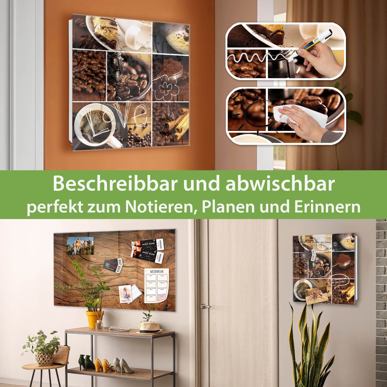 ✅ Magnetisch und mit Kreidestift beschreibbar, gehärtetes Glas, links angeschlagene TürOrdnung und Design in einem