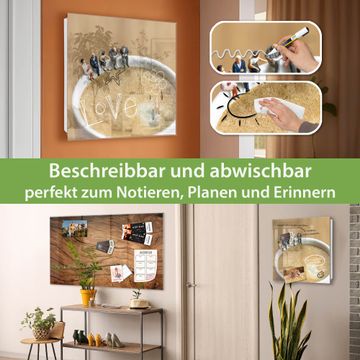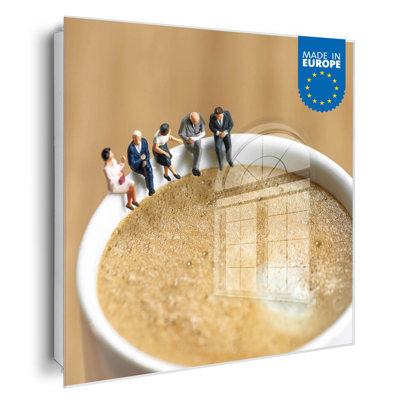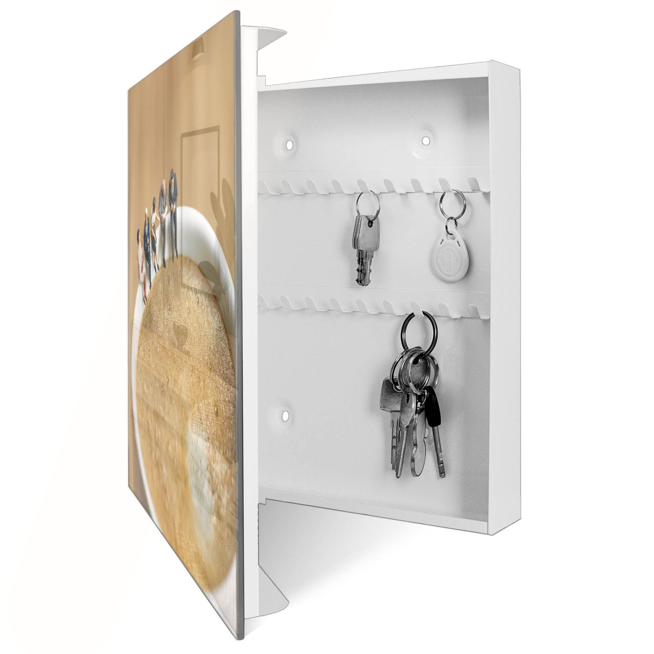Bringe Ordnung und Eleganz in deinen Eingangsbereich mit dem banjado Schlüsselkasten Motiv Motiv Kaffeepause. Die moderne Schlüsselbox kombiniert funktionales Design mit hochwertiger Verarbeitung und wird so zu einem echten Hingucker in Flur, Büro oder Ferienwohnung. ✅ Stilvolle Schlüsselaufbewahrung mit Glasfront im Motiv Motiv Kaffeepause Der Design-Schlüsselkasten Motiv Motiv Kaffeepause bietet Platz für bis zu 50 Schlüssel, die auf 5 stabilen Reihen mit je 10 Haken übersichtlich verstaut werden. Mit seinen kompakten Maßen von 30 x 30 x 5 cm passt die Schlüsselbox perfekt auch in kleinere Räume. Der weiß lackierte Stahlkorpus mit rechts angeschlagenem Türscharnier harmoniert mit der Glasfront und fügt sich nahtlos in jedes Wohnambiente ein. Ob als Schlüsselorganizer für Zuhause oder als praktische Lösung für Büros, Praxen und Gewerbe, der banjado Schlüsselkasten sorgt für Ordnung und Übersicht. Dank der magnetischen, mit Kreidestiften beschreibbaren Glasfront kannst du Notizen anheften oder Termine direkt auf der Oberfläche festhalten. Die Schlüsselbox Motiv Motiv Kaffeepause zur Wandmontage wird inklusive Befestigungsmaterial geliefert und ist schnell angebracht. So hast du deine Schlüssel jederzeit griffbereit und zugleich stilvoll verstaut. Mit diesem banjado Schlüsselkasten Motiv Motiv Kaffeepause kombinierst du praktische Aufbewahrung mit stilvollem Wohndesign. Ob privat oder geschäftlich, die Schlüsselbox sorgt für mehr Ordnung, Übersicht und ein wohnliches Ambiente.Vorteile im Überblick