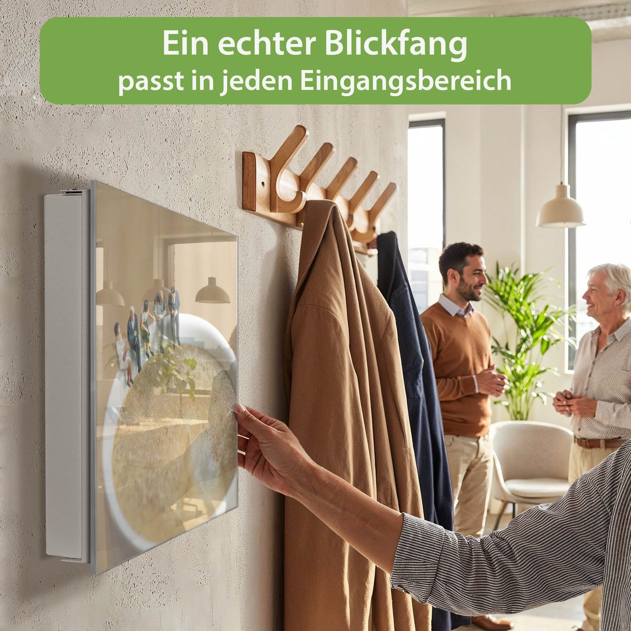 ✅ Magnetisch und mit Kreidestift beschreibbar, gehärtetes Glas, links angeschlagene TürOrdnung und Design in einem