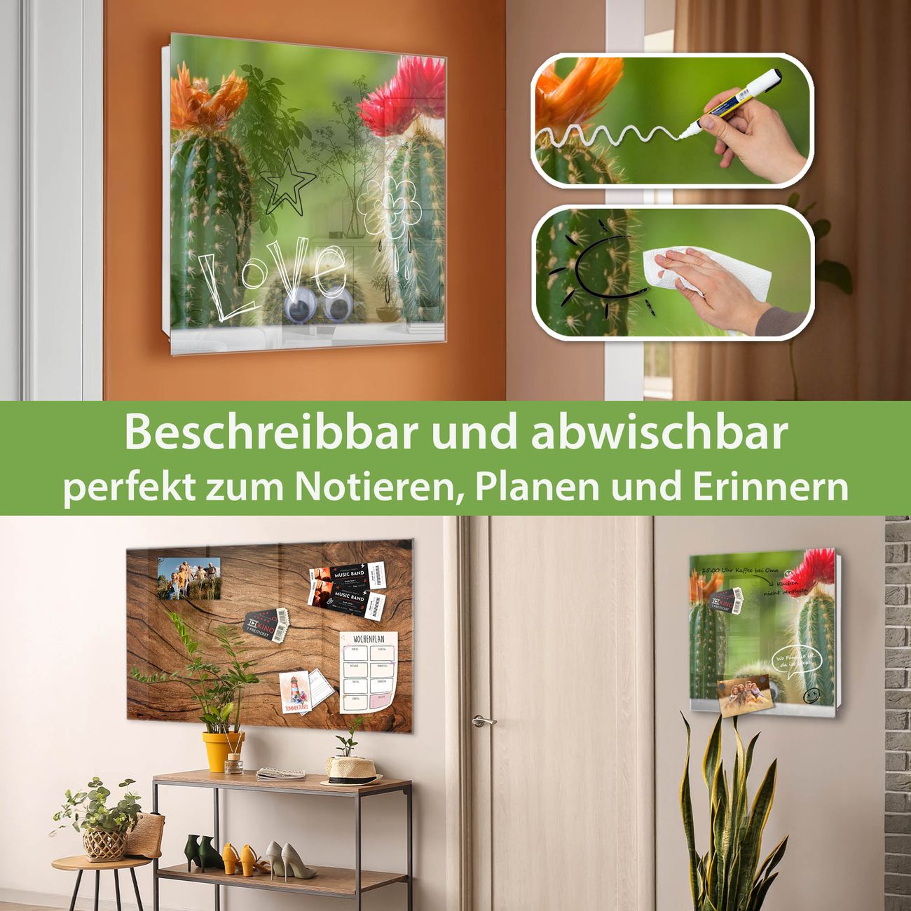 ✅ Magnetisch und mit Kreidestift beschreibbar, gehärtetes Glas, links angeschlagene TürOrdnung und Design in einem