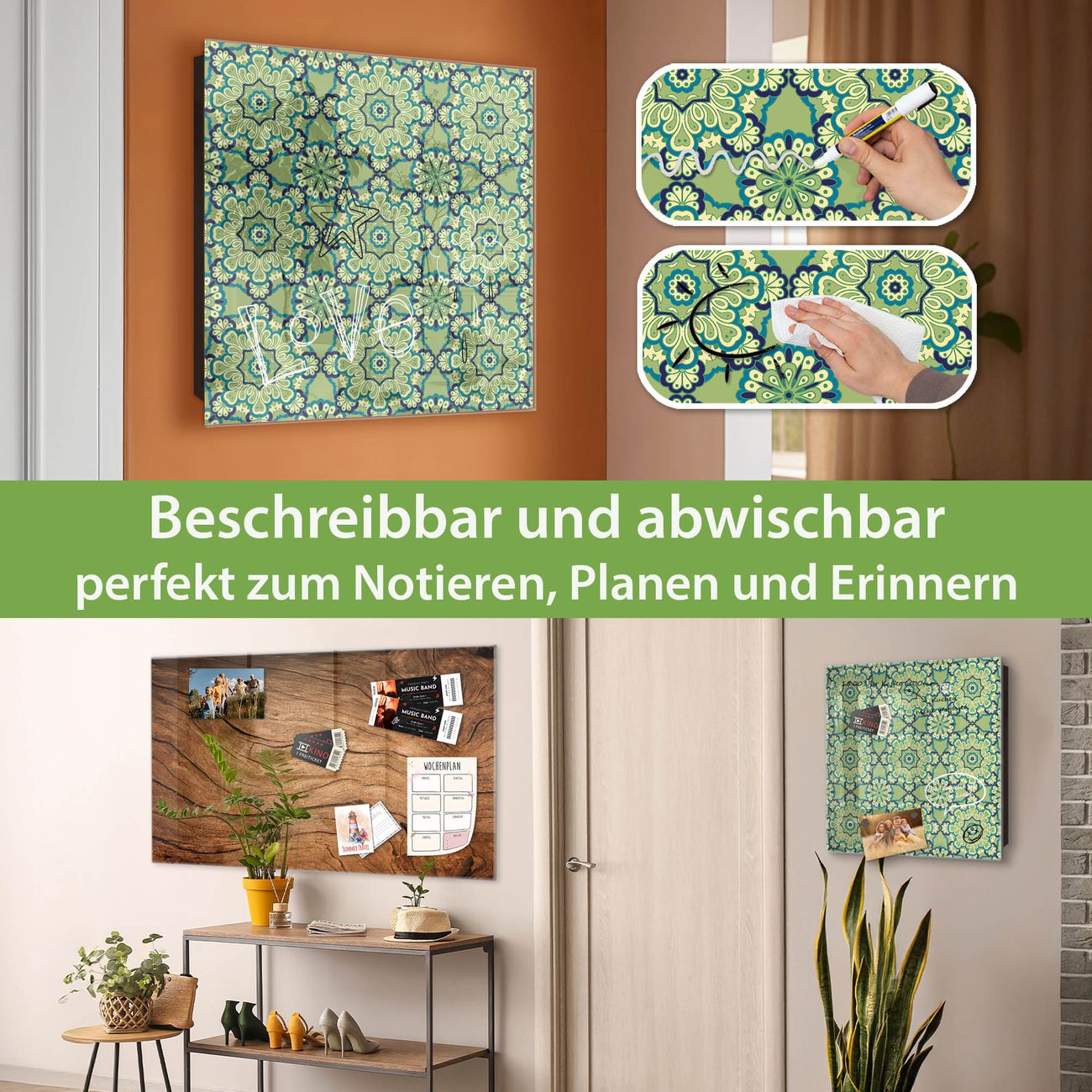 ✅ Magnetisch und mit Kreidestift beschreibbar, gehärtetes Glas, links angeschlagene TürOrdnung und Design in einem