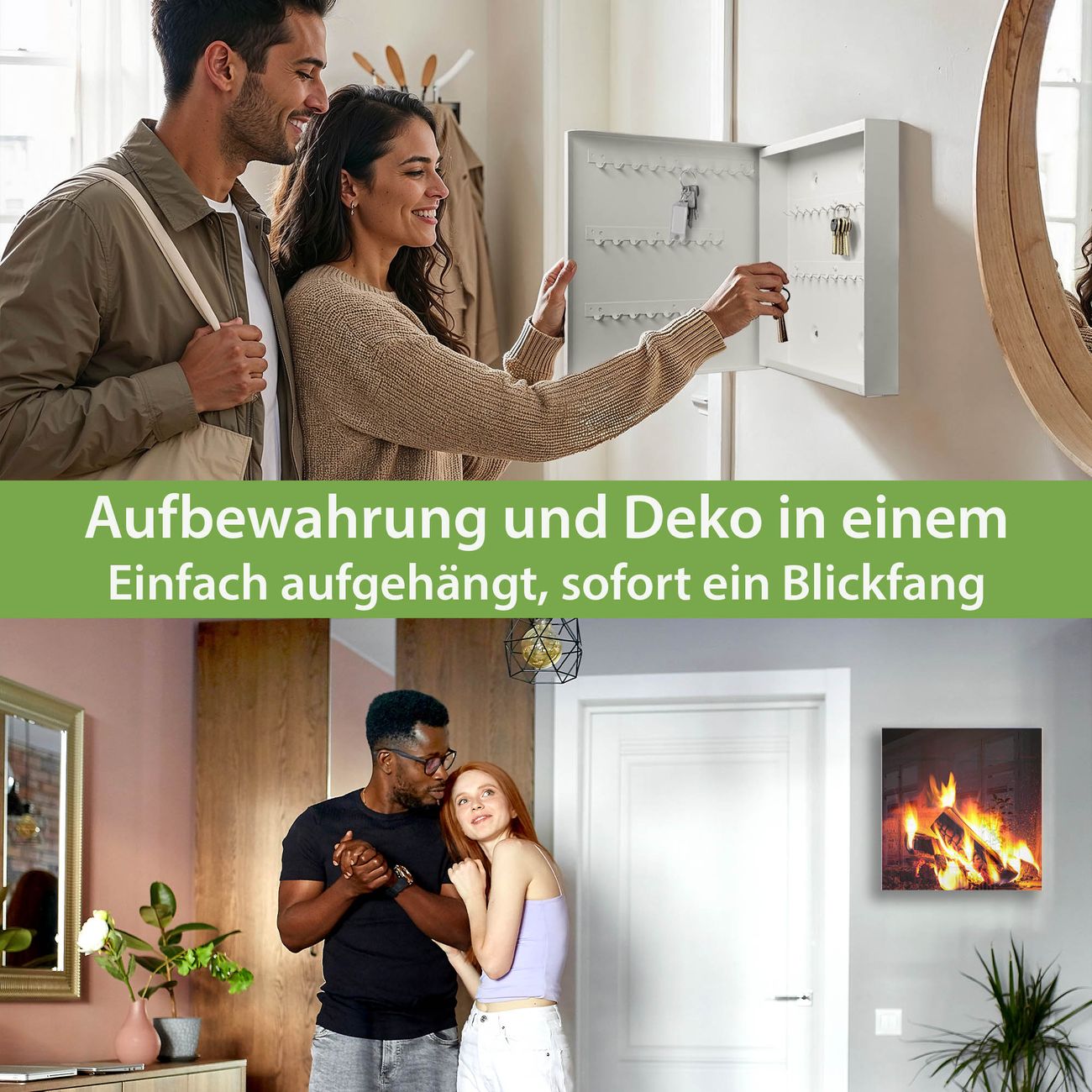 Schlüsselkasten Glas Motiv Kaminfeuer