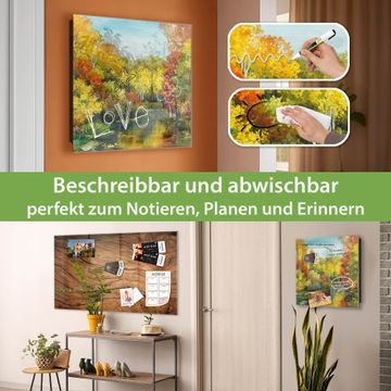 Bringe Ordnung und Eleganz in deinen Eingangsbereich mit dem banjado Schlüsselkasten Motiv Motiv Kanal Im Herbst. Die moderne Schlüsselbox kombiniert funktionales Design mit hochwertiger Verarbeitung und wird so zu einem echten Hingucker in Flur, Büro oder Ferienwohnung. ✅ Stilvolle Schlüsselaufbewahrung mit Glasfront im Motiv Motiv Kanal Im Herbst Der Design-Schlüsselkasten Motiv Motiv Kanal Im Herbst bietet Platz für bis zu 50 Schlüssel, die auf 5 stabilen Reihen mit je 10 Haken übersichtlich verstaut werden. Mit seinen kompakten Maßen von 30 x 30 x 5 cm passt die Schlüsselbox perfekt auch in kleinere Räume. Der schwarz lackierte Stahlkorpus mit rechts angeschlagenem Türscharnier harmoniert mit der Glasfront und fügt sich nahtlos in jedes Wohnambiente ein. Ob als Schlüsselorganizer für Zuhause oder als praktische Lösung für Büros, Praxen und Gewerbe, der banjado Schlüsselkasten sorgt für Ordnung und Übersicht. Dank der magnetischen, mit Kreidestiften beschreibbaren Glasfront kannst du Notizen anheften oder Termine direkt auf der Oberfläche festhalten. Die Schlüsselbox Motiv Motiv Kanal Im Herbst zur Wandmontage wird inklusive Befestigungsmaterial geliefert und ist schnell angebracht. So hast du deine Schlüssel jederzeit griffbereit und zugleich stilvoll verstaut. Mit diesem banjado Schlüsselkasten Motiv Motiv Kanal Im Herbst kombinierst du praktische Aufbewahrung mit stilvollem Wohndesign. Ob privat oder geschäftlich, die Schlüsselbox sorgt für mehr Ordnung, Übersicht und ein wohnliches Ambiente.Vorteile im Überblick