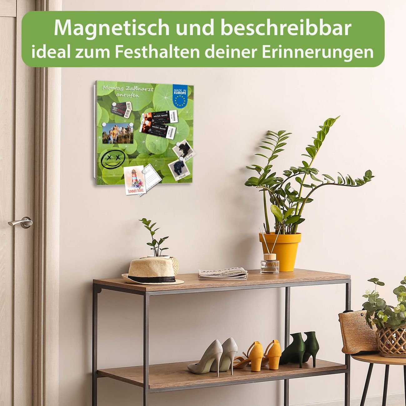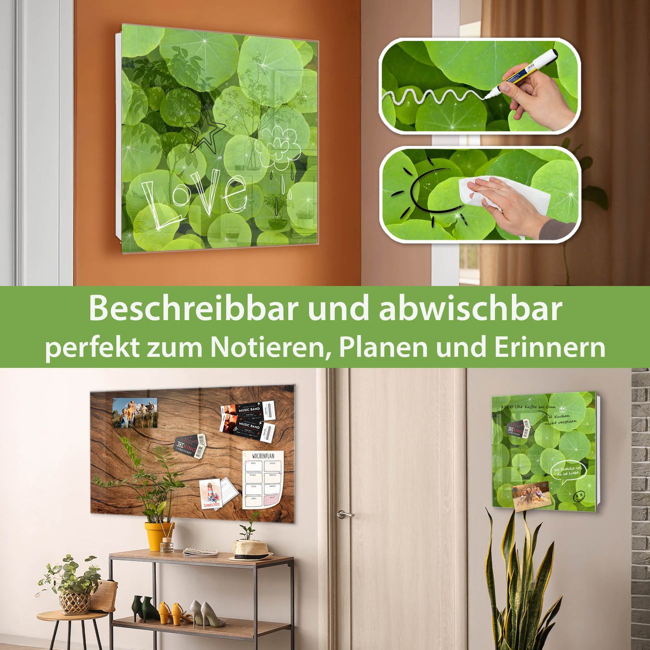 ✅ Magnetisch und mit Kreidestift beschreibbar, gehärtetes Glas, rechts angeschlagene TürOrdnung und Design in einem