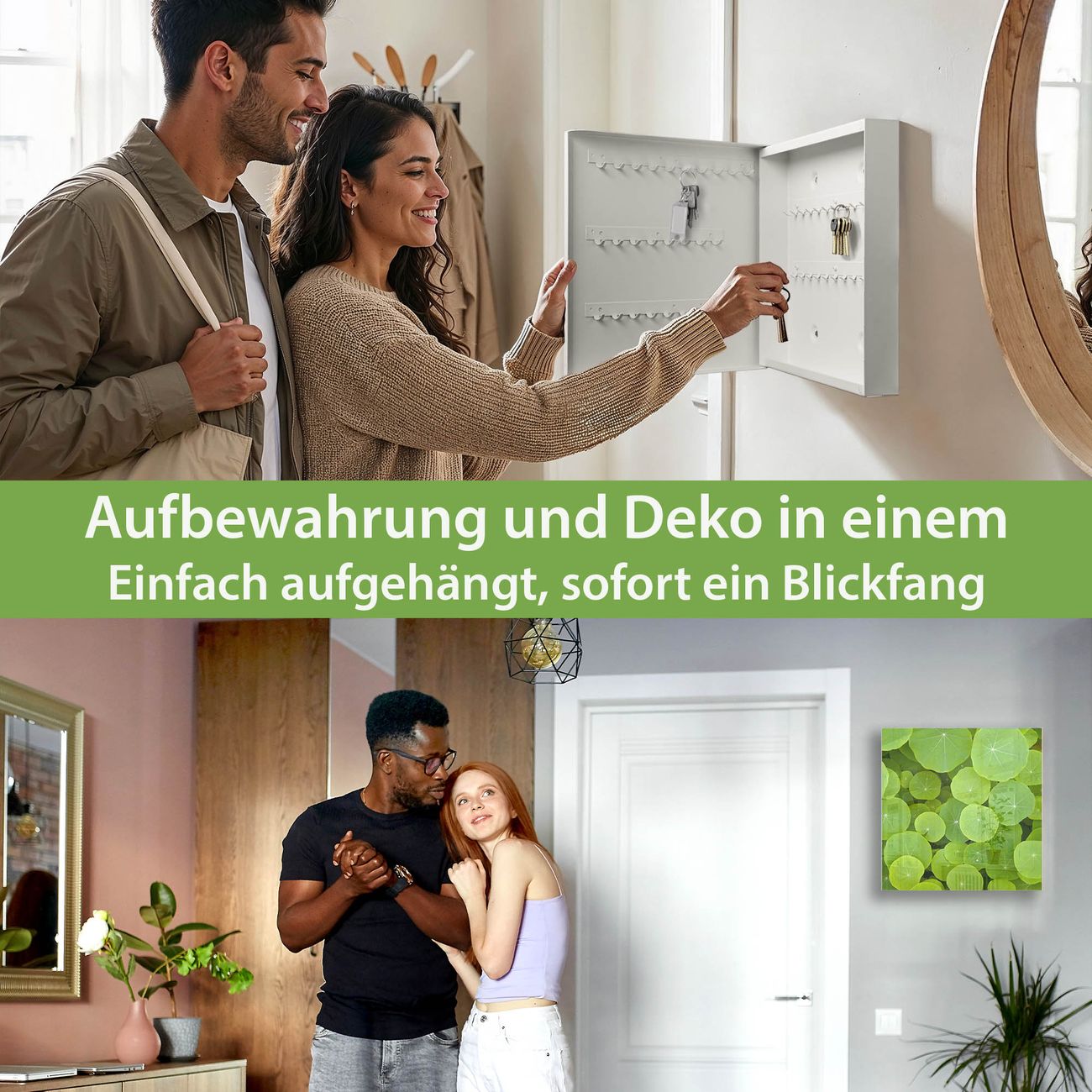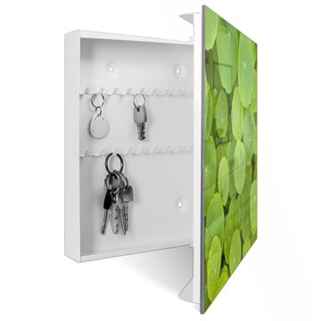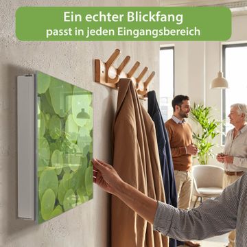 Bringe Ordnung und Eleganz in deinen Eingangsbereich mit dem banjado Schlüsselkasten Motiv Motiv Kapuzinerkresse. Die moderne Schlüsselbox kombiniert funktionales Design mit hochwertiger Verarbeitung und wird so zu einem echten Hingucker in Flur, Büro oder Ferienwohnung. ✅ Stilvolle Schlüsselaufbewahrung mit Glasfront im Motiv Motiv Kapuzinerkresse Der Design-Schlüsselkasten Motiv Motiv Kapuzinerkresse bietet Platz für bis zu 50 Schlüssel, die auf 5 stabilen Reihen mit je 10 Haken übersichtlich verstaut werden. Mit seinen kompakten Maßen von 30 x 30 x 5 cm passt die Schlüsselbox perfekt auch in kleinere Räume. Der weiß lackierte Stahlkorpus mit rechts angeschlagenem Türscharnier harmoniert mit der Glasfront und fügt sich nahtlos in jedes Wohnambiente ein. Ob als Schlüsselorganizer für Zuhause oder als praktische Lösung für Büros, Praxen und Gewerbe, der banjado Schlüsselkasten sorgt für Ordnung und Übersicht. Dank der magnetischen, mit Kreidestiften beschreibbaren Glasfront kannst du Notizen anheften oder Termine direkt auf der Oberfläche festhalten. Die Schlüsselbox Motiv Motiv Kapuzinerkresse zur Wandmontage wird inklusive Befestigungsmaterial geliefert und ist schnell angebracht. So hast du deine Schlüssel jederzeit griffbereit und zugleich stilvoll verstaut. Mit diesem banjado Schlüsselkasten Motiv Motiv Kapuzinerkresse kombinierst du praktische Aufbewahrung mit stilvollem Wohndesign. Ob privat oder geschäftlich, die Schlüsselbox sorgt für mehr Ordnung, Übersicht und ein wohnliches Ambiente.Vorteile im Überblick