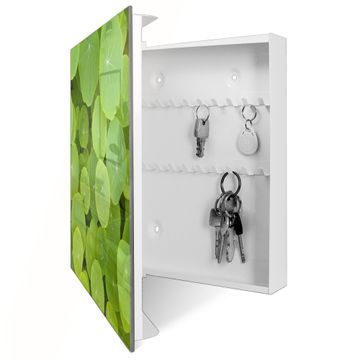 Bringe Ordnung und Eleganz in deinen Eingangsbereich mit dem banjado Schlüsselkasten Motiv Motiv Kapuzinerkresse. Die moderne Schlüsselbox kombiniert funktionales Design mit hochwertiger Verarbeitung und wird so zu einem echten Hingucker in Flur, Büro oder Ferienwohnung. ✅ Stilvolle Schlüsselaufbewahrung mit Glasfront im Motiv Motiv Kapuzinerkresse Der Design-Schlüsselkasten Motiv Motiv Kapuzinerkresse bietet Platz für bis zu 50 Schlüssel, die auf 5 stabilen Reihen mit je 10 Haken übersichtlich verstaut werden. Mit seinen kompakten Maßen von 30 x 30 x 5 cm passt die Schlüsselbox perfekt auch in kleinere Räume. Der weiß lackierte Stahlkorpus mit rechts angeschlagenem Türscharnier harmoniert mit der Glasfront und fügt sich nahtlos in jedes Wohnambiente ein. Ob als Schlüsselorganizer für Zuhause oder als praktische Lösung für Büros, Praxen und Gewerbe, der banjado Schlüsselkasten sorgt für Ordnung und Übersicht. Dank der magnetischen, mit Kreidestiften beschreibbaren Glasfront kannst du Notizen anheften oder Termine direkt auf der Oberfläche festhalten. Die Schlüsselbox Motiv Motiv Kapuzinerkresse zur Wandmontage wird inklusive Befestigungsmaterial geliefert und ist schnell angebracht. So hast du deine Schlüssel jederzeit griffbereit und zugleich stilvoll verstaut. Mit diesem banjado Schlüsselkasten Motiv Motiv Kapuzinerkresse kombinierst du praktische Aufbewahrung mit stilvollem Wohndesign. Ob privat oder geschäftlich, die Schlüsselbox sorgt für mehr Ordnung, Übersicht und ein wohnliches Ambiente.Vorteile im Überblick