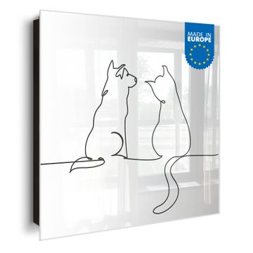 Bringe Ordnung und Eleganz in deinen Eingangsbereich mit dem banjado Schlüsselkasten Motiv Motiv Katzen-Hunde-Freundschaft. Die moderne Schlüsselbox kombiniert funktionales Design mit hochwertiger Verarbeitung und wird so zu einem echten Hingucker in Flur, Büro oder Ferienwohnung. ✅ Stilvolle Schlüsselaufbewahrung mit Glasfront im Motiv Motiv Katzen-Hunde-Freundschaft Der Design-Schlüsselkasten Motiv Motiv Katzen-Hunde-Freundschaft bietet Platz für bis zu 50 Schlüssel, die auf 5 stabilen Reihen mit je 10 Haken übersichtlich verstaut werden. Mit seinen kompakten Maßen von 30 x 30 x 5 cm passt die Schlüsselbox perfekt auch in kleinere Räume. Der schwarz lackierte Stahlkorpus mit rechts angeschlagenem Türscharnier harmoniert mit der Glasfront und fügt sich nahtlos in jedes Wohnambiente ein. Ob als Schlüsselorganizer für Zuhause oder als praktische Lösung für Büros, Praxen und Gewerbe, der banjado Schlüsselkasten sorgt für Ordnung und Übersicht. Dank der magnetischen, mit Kreidestiften beschreibbaren Glasfront kannst du Notizen anheften oder Termine direkt auf der Oberfläche festhalten. Die Schlüsselbox Motiv Motiv Katzen-Hunde-Freundschaft zur Wandmontage wird inklusive Befestigungsmaterial geliefert und ist schnell angebracht. So hast du deine Schlüssel jederzeit griffbereit und zugleich stilvoll verstaut. Mit diesem banjado Schlüsselkasten Motiv Motiv Katzen-Hunde-Freundschaft kombinierst du praktische Aufbewahrung mit stilvollem Wohndesign. Ob privat oder geschäftlich, die Schlüsselbox sorgt für mehr Ordnung, Übersicht und ein wohnliches Ambiente.Vorteile im Überblick
