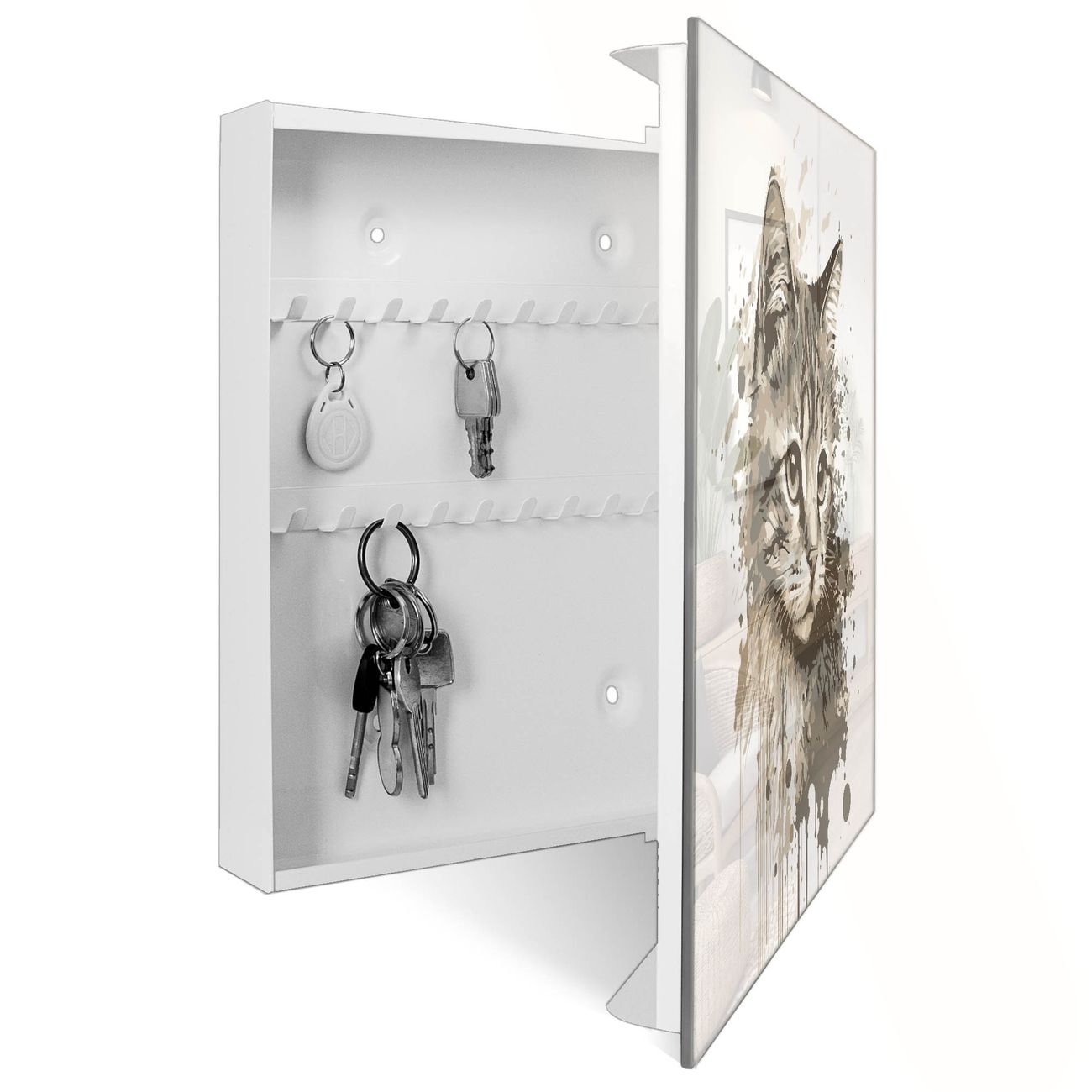 Schlüsselkasten Glas Motiv Katzenportrait in Aquarell 2