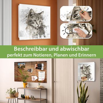 Bringe Ordnung und Eleganz in deinen Eingangsbereich mit dem banjado Schlüsselkasten Motiv Motiv Katzenportrait in Aquarell 2. Die moderne Schlüsselbox kombiniert funktionales Design mit hochwertiger Verarbeitung und wird so zu einem echten Hingucker in Flur, Büro oder Ferienwohnung. ✅ Stilvolle Schlüsselaufbewahrung mit Glasfront im Motiv Motiv Katzenportrait in Aquarell 2 Der Design-Schlüsselkasten Motiv Motiv Katzenportrait in Aquarell 2 bietet Platz für bis zu 50 Schlüssel, die auf 5 stabilen Reihen mit je 10 Haken übersichtlich verstaut werden. Mit seinen kompakten Maßen von 30 x 30 x 5 cm passt die Schlüsselbox perfekt auch in kleinere Räume. Der weiß lackierte Stahlkorpus mit rechts angeschlagenem Türscharnier harmoniert mit der Glasfront und fügt sich nahtlos in jedes Wohnambiente ein. Ob als Schlüsselorganizer für Zuhause oder als praktische Lösung für Büros, Praxen und Gewerbe, der banjado Schlüsselkasten sorgt für Ordnung und Übersicht. Dank der magnetischen, mit Kreidestiften beschreibbaren Glasfront kannst du Notizen anheften oder Termine direkt auf der Oberfläche festhalten. Die Schlüsselbox Motiv Motiv Katzenportrait in Aquarell 2 zur Wandmontage wird inklusive Befestigungsmaterial geliefert und ist schnell angebracht. So hast du deine Schlüssel jederzeit griffbereit und zugleich stilvoll verstaut. Mit diesem banjado Schlüsselkasten Motiv Motiv Katzenportrait in Aquarell 2 kombinierst du praktische Aufbewahrung mit stilvollem Wohndesign. Ob privat oder geschäftlich, die Schlüsselbox sorgt für mehr Ordnung, Übersicht und ein wohnliches Ambiente.Vorteile im Überblick