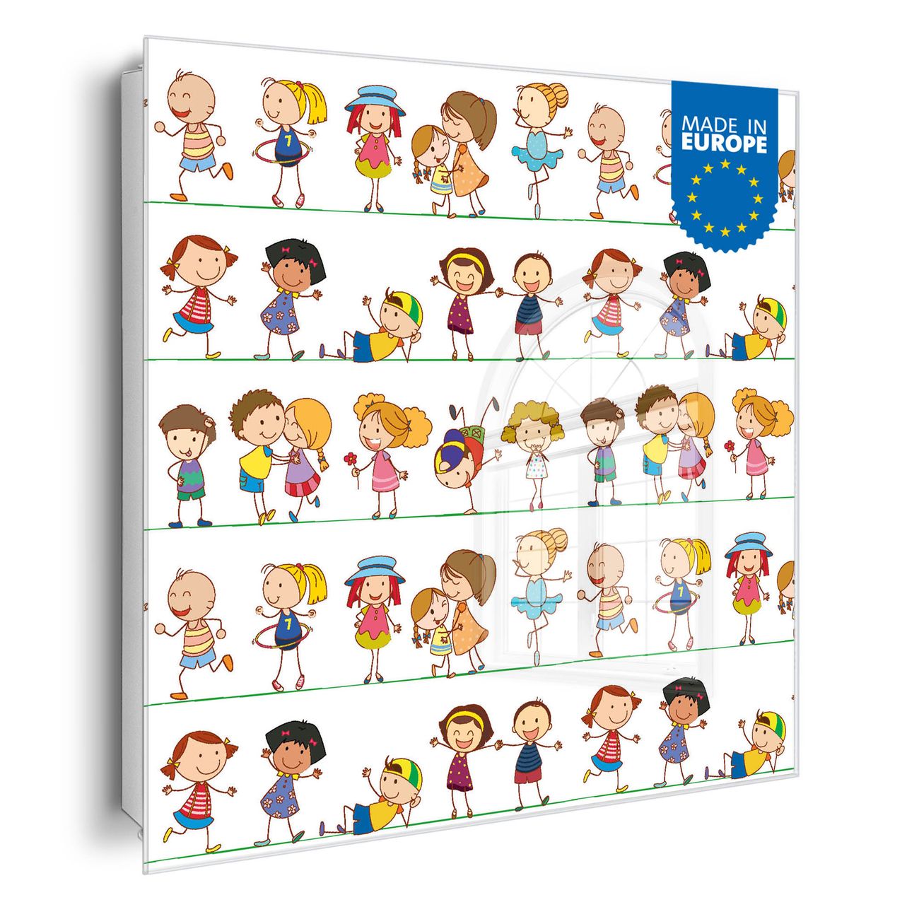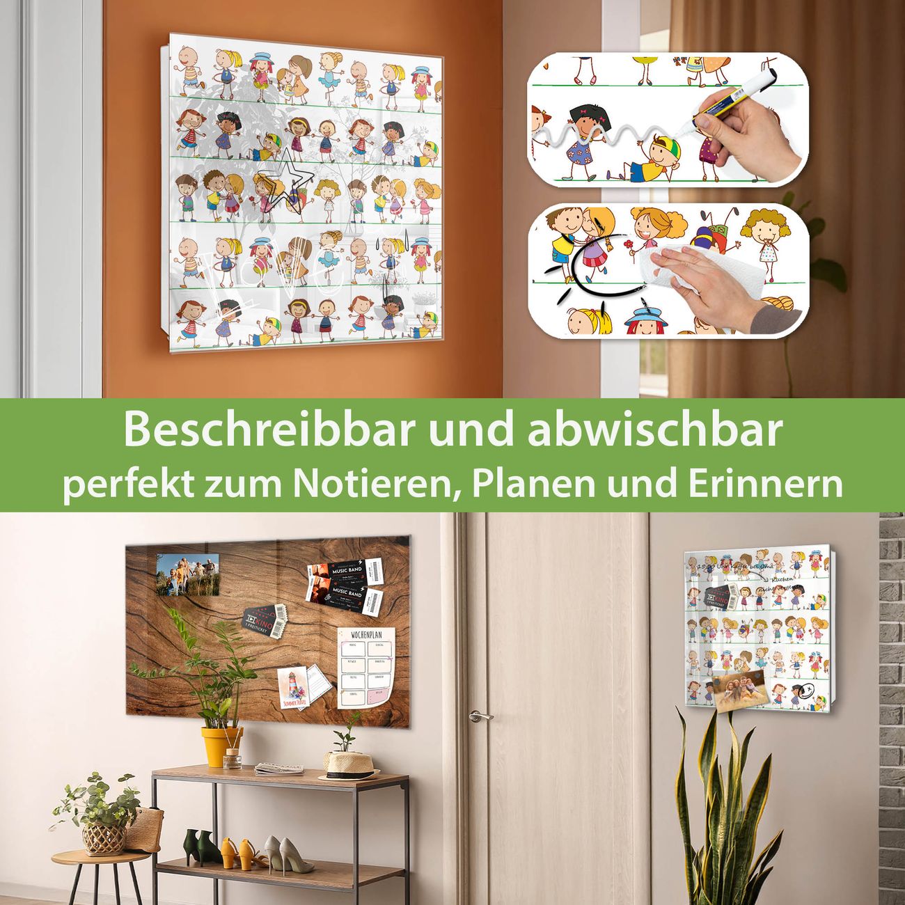 Bringe Ordnung und Eleganz in deinen Eingangsbereich mit dem banjado Schlüsselkasten Motiv Motiv Kinder. Die moderne Schlüsselbox kombiniert funktionales Design mit hochwertiger Verarbeitung und wird so zu einem echten Hingucker in Flur, Büro oder Ferienwohnung. ✅ Stilvolle Schlüsselaufbewahrung mit Glasfront im Motiv Motiv Kinder Der Design-Schlüsselkasten Motiv Motiv Kinder bietet Platz für bis zu 50 Schlüssel, die auf 5 stabilen Reihen mit je 10 Haken übersichtlich verstaut werden. Mit seinen kompakten Maßen von 30 x 30 x 5 cm passt die Schlüsselbox perfekt auch in kleinere Räume. Der weiß lackierte Stahlkorpus mit rechts angeschlagenem Türscharnier harmoniert mit der Glasfront und fügt sich nahtlos in jedes Wohnambiente ein. Ob als Schlüsselorganizer für Zuhause oder als praktische Lösung für Büros, Praxen und Gewerbe, der banjado Schlüsselkasten sorgt für Ordnung und Übersicht. Dank der magnetischen, mit Kreidestiften beschreibbaren Glasfront kannst du Notizen anheften oder Termine direkt auf der Oberfläche festhalten. Die Schlüsselbox Motiv Motiv Kinder zur Wandmontage wird inklusive Befestigungsmaterial geliefert und ist schnell angebracht. So hast du deine Schlüssel jederzeit griffbereit und zugleich stilvoll verstaut. Mit diesem banjado Schlüsselkasten Motiv Motiv Kinder kombinierst du praktische Aufbewahrung mit stilvollem Wohndesign. Ob privat oder geschäftlich, die Schlüsselbox sorgt für mehr Ordnung, Übersicht und ein wohnliches Ambiente.Vorteile im Überblick
