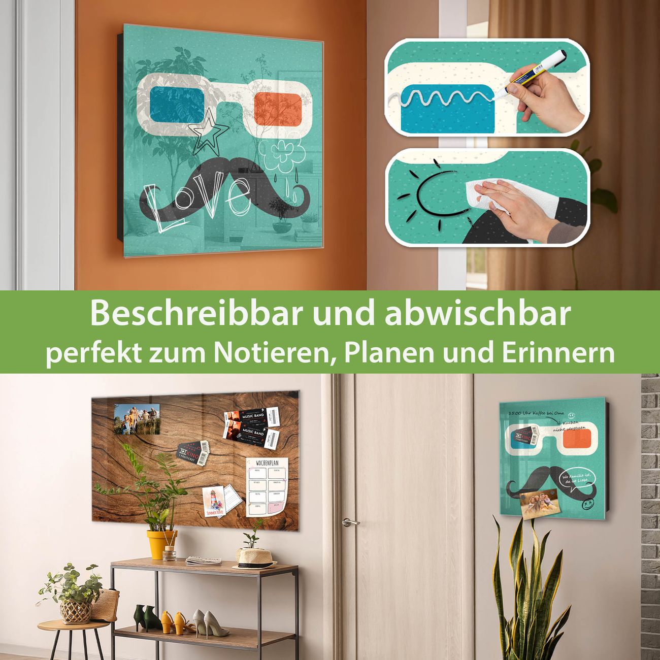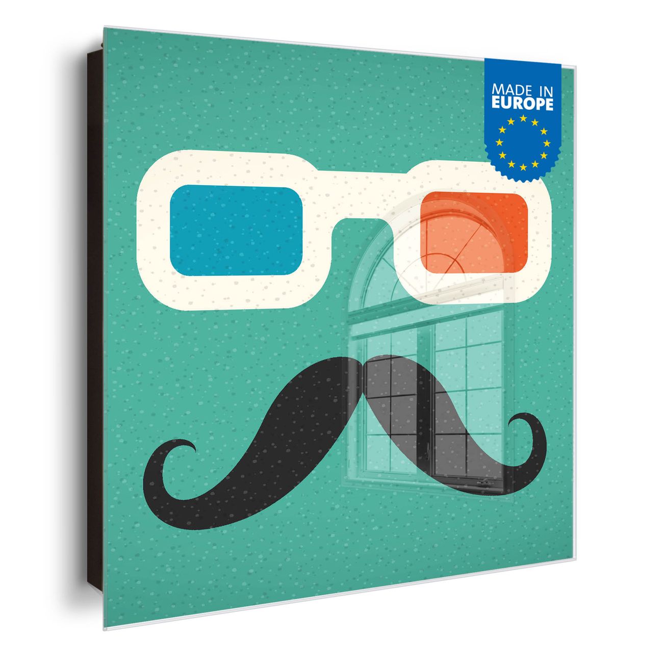Bringe Ordnung und Eleganz in deinen Eingangsbereich mit dem banjado Schlüsselkasten Motiv Motiv Kinobrille. Die moderne Schlüsselbox kombiniert funktionales Design mit hochwertiger Verarbeitung und wird so zu einem echten Hingucker in Flur, Büro oder Ferienwohnung. ✅ Stilvolle Schlüsselaufbewahrung mit Glasfront im Motiv Motiv Kinobrille Der Design-Schlüsselkasten Motiv Motiv Kinobrille bietet Platz für bis zu 50 Schlüssel, die auf 5 stabilen Reihen mit je 10 Haken übersichtlich verstaut werden. Mit seinen kompakten Maßen von 30 x 30 x 5 cm passt die Schlüsselbox perfekt auch in kleinere Räume. Der schwarz lackierte Stahlkorpus mit rechts angeschlagenem Türscharnier harmoniert mit der Glasfront und fügt sich nahtlos in jedes Wohnambiente ein. Ob als Schlüsselorganizer für Zuhause oder als praktische Lösung für Büros, Praxen und Gewerbe, der banjado Schlüsselkasten sorgt für Ordnung und Übersicht. Dank der magnetischen, mit Kreidestiften beschreibbaren Glasfront kannst du Notizen anheften oder Termine direkt auf der Oberfläche festhalten. Die Schlüsselbox Motiv Motiv Kinobrille zur Wandmontage wird inklusive Befestigungsmaterial geliefert und ist schnell angebracht. So hast du deine Schlüssel jederzeit griffbereit und zugleich stilvoll verstaut. Mit diesem banjado Schlüsselkasten Motiv Motiv Kinobrille kombinierst du praktische Aufbewahrung mit stilvollem Wohndesign. Ob privat oder geschäftlich, die Schlüsselbox sorgt für mehr Ordnung, Übersicht und ein wohnliches Ambiente.Vorteile im Überblick