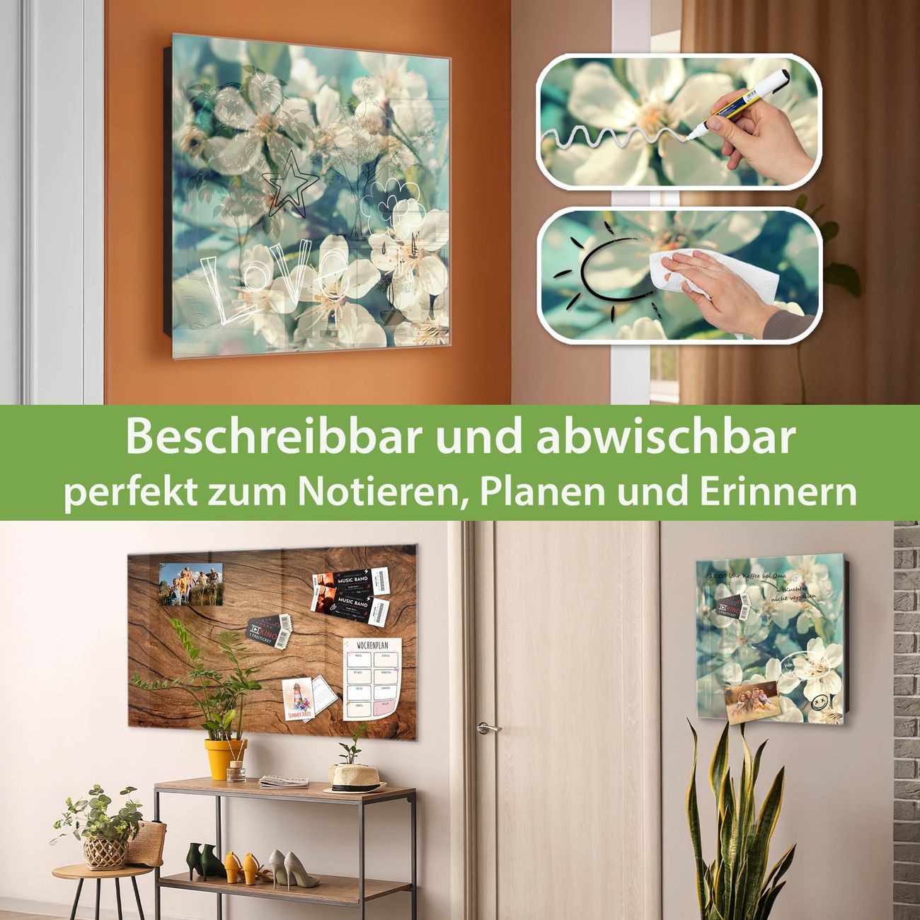 ✅ Magnetisch und mit Kreidestift beschreibbar, gehärtetes Glas, links angeschlagene TürOrdnung und Design in einem